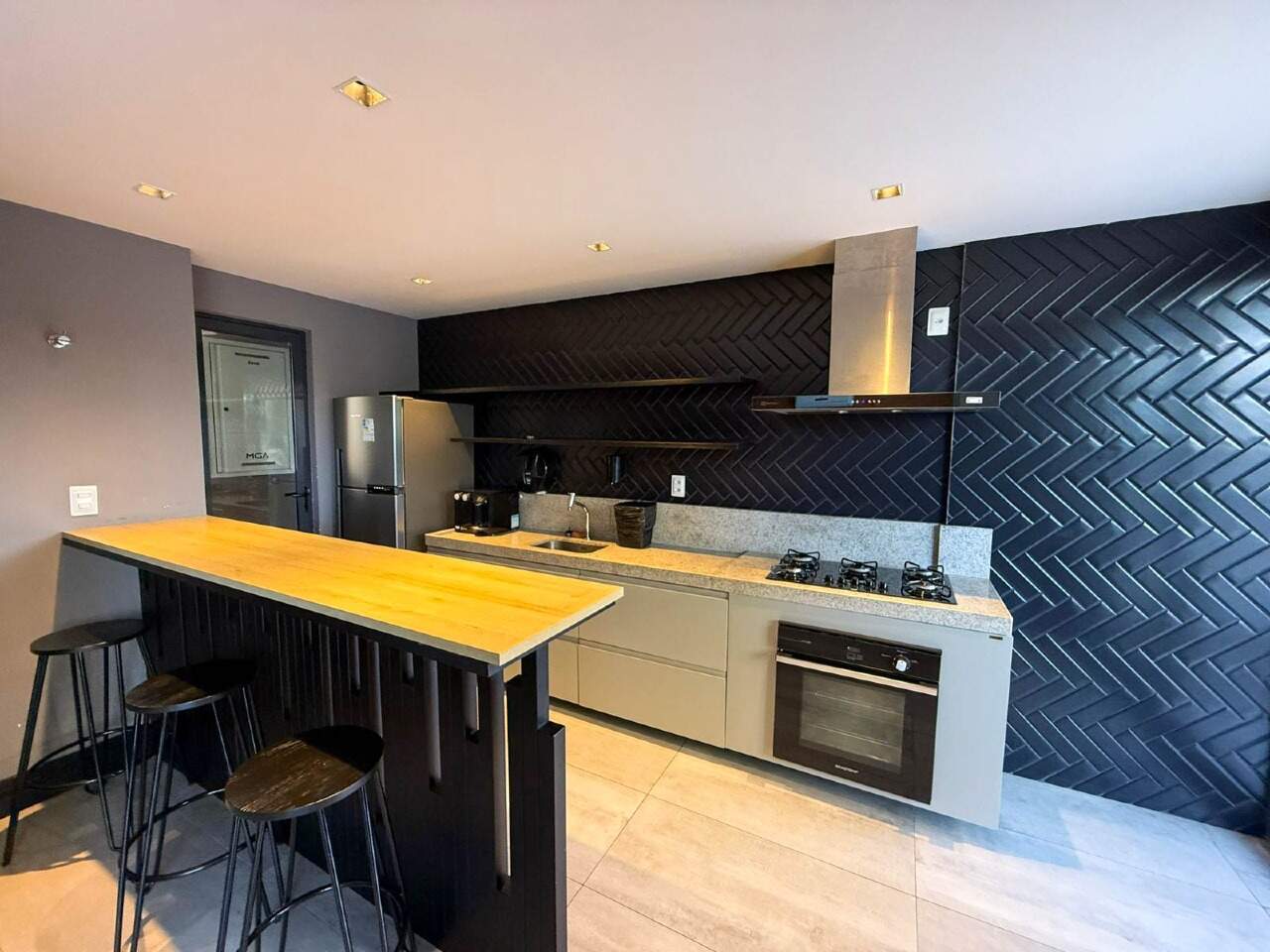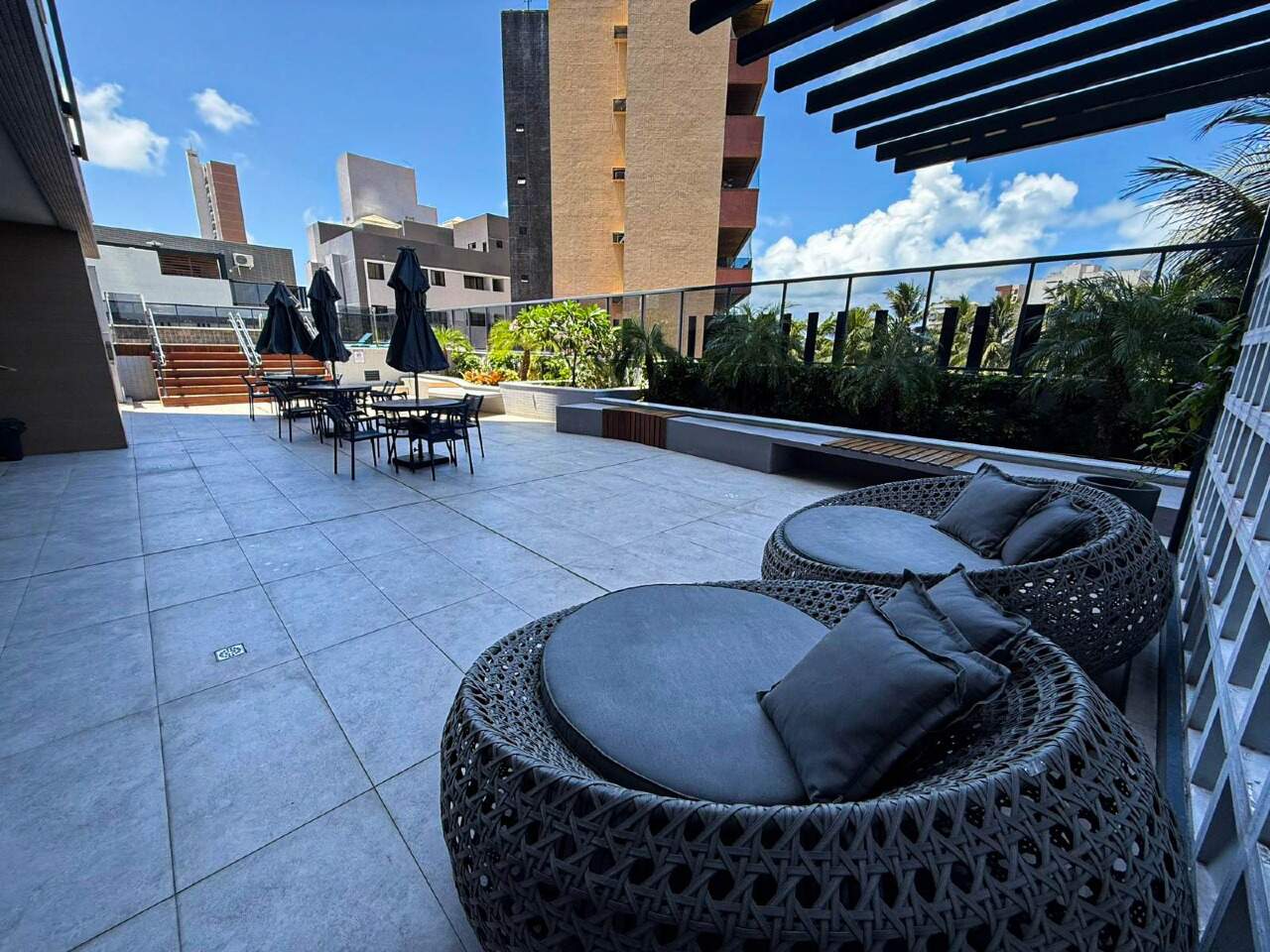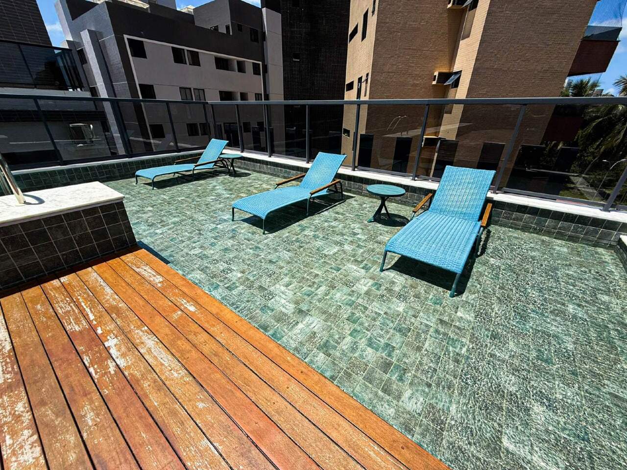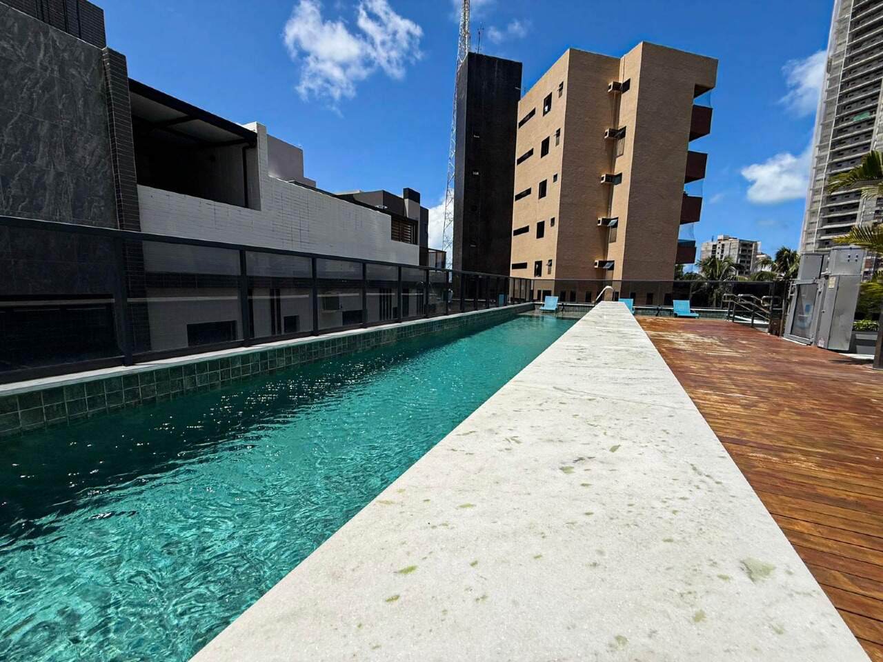 > Área de lazer com piscina, churrasqueira e espaço gourmet;