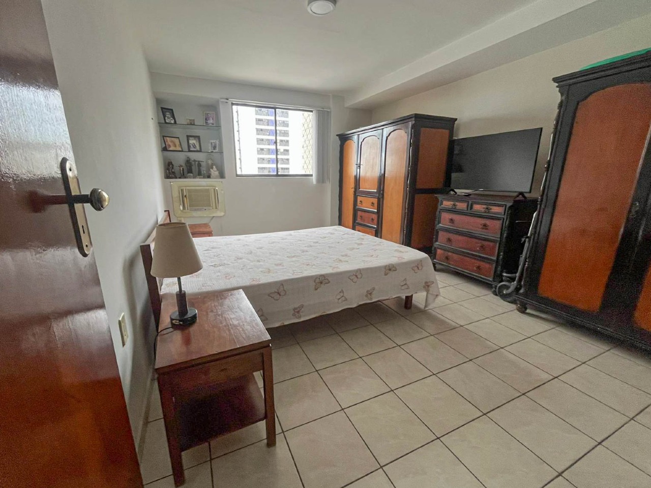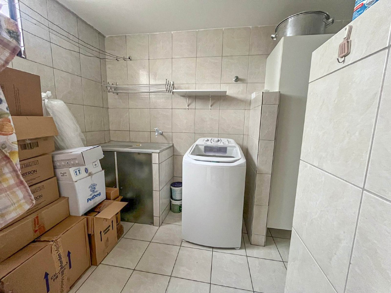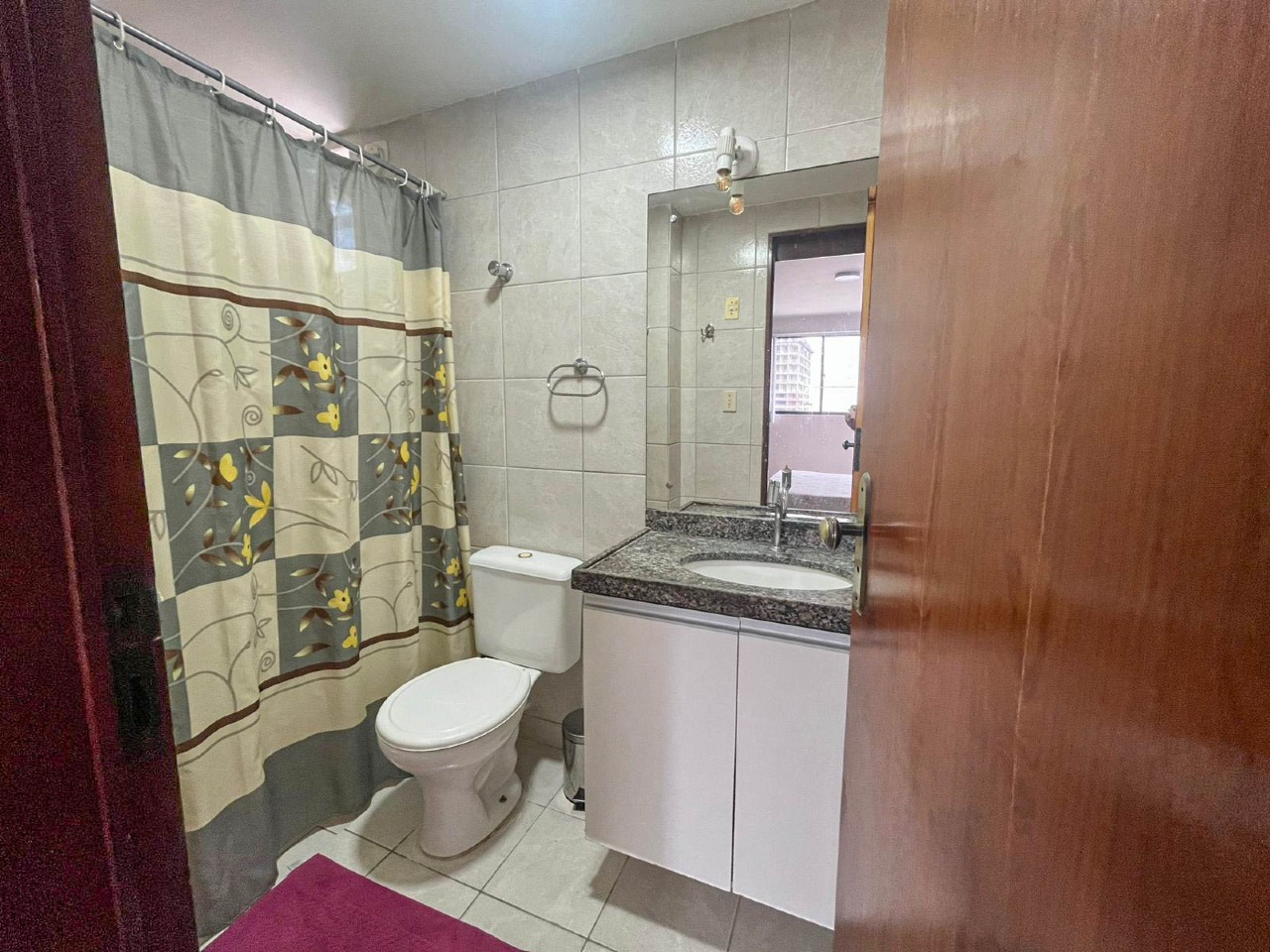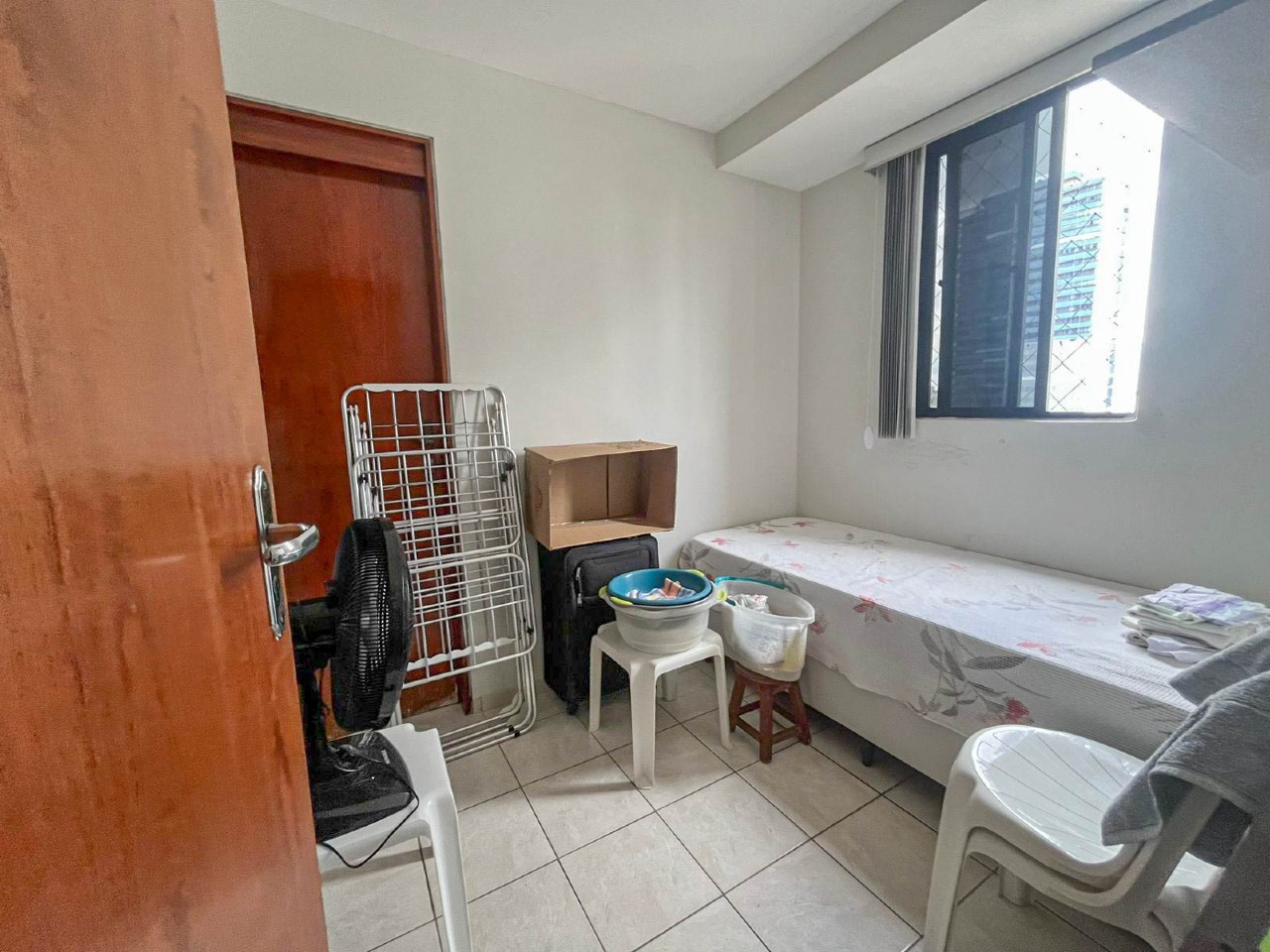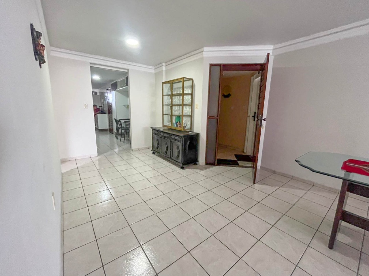 Apartamento mobiliado com sala ampla para dois ambientes, cozinha com área de serviço integrada, três quartos, quatro banheiros sendo dois deles suítes.
