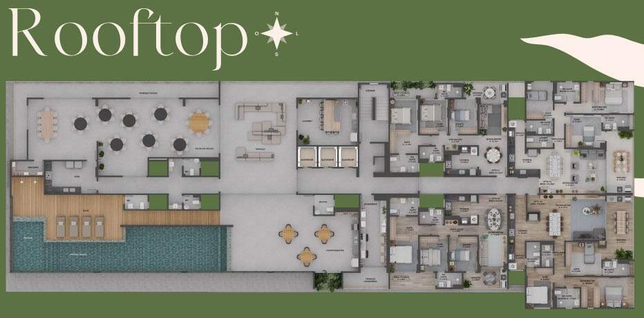 O empreendimento tem uma vasta área de lazer com bicicletário, espaço kids, co-working, eclusa e storage delivery, academia, lavanderia, gourmet grill, terraço, salão de festas, espaço gourmet, piscina de 60m² com deck e prainha, elevador e muito mais para garantir a sua diversão.