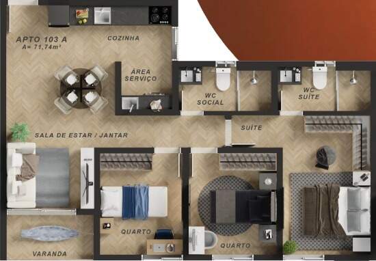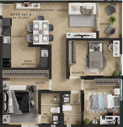 Escolha o apartamento que mais se encaixa com você com opções de planta entre 36m² a m², com1, 2 ou 3 quartos, sendo uma suíte, com sala, cozinha, varanda, área de serviço, área privativa, elevador e 1 ou 2 vagas de garagem.