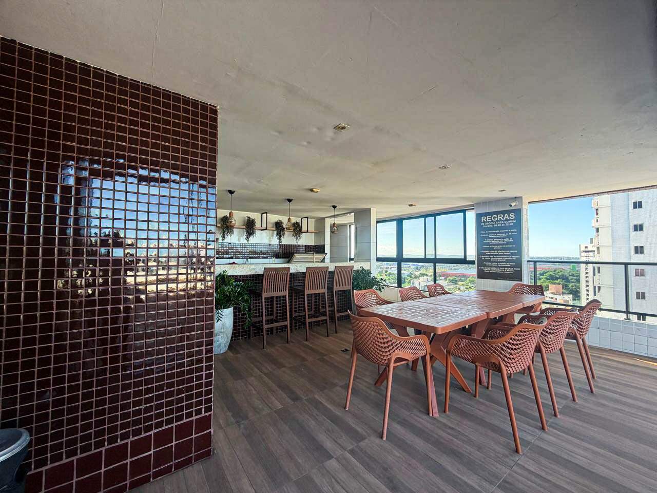 > Área de lazer com piscina, churrasqueira e espaço gourmet;