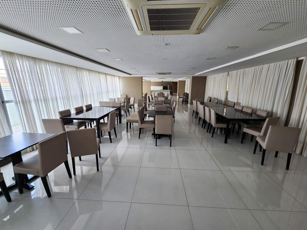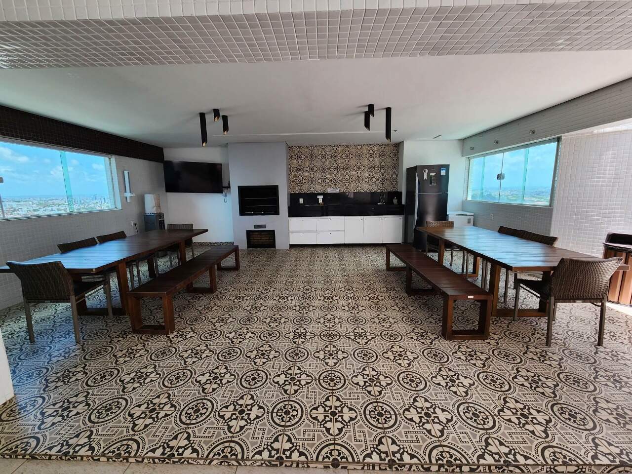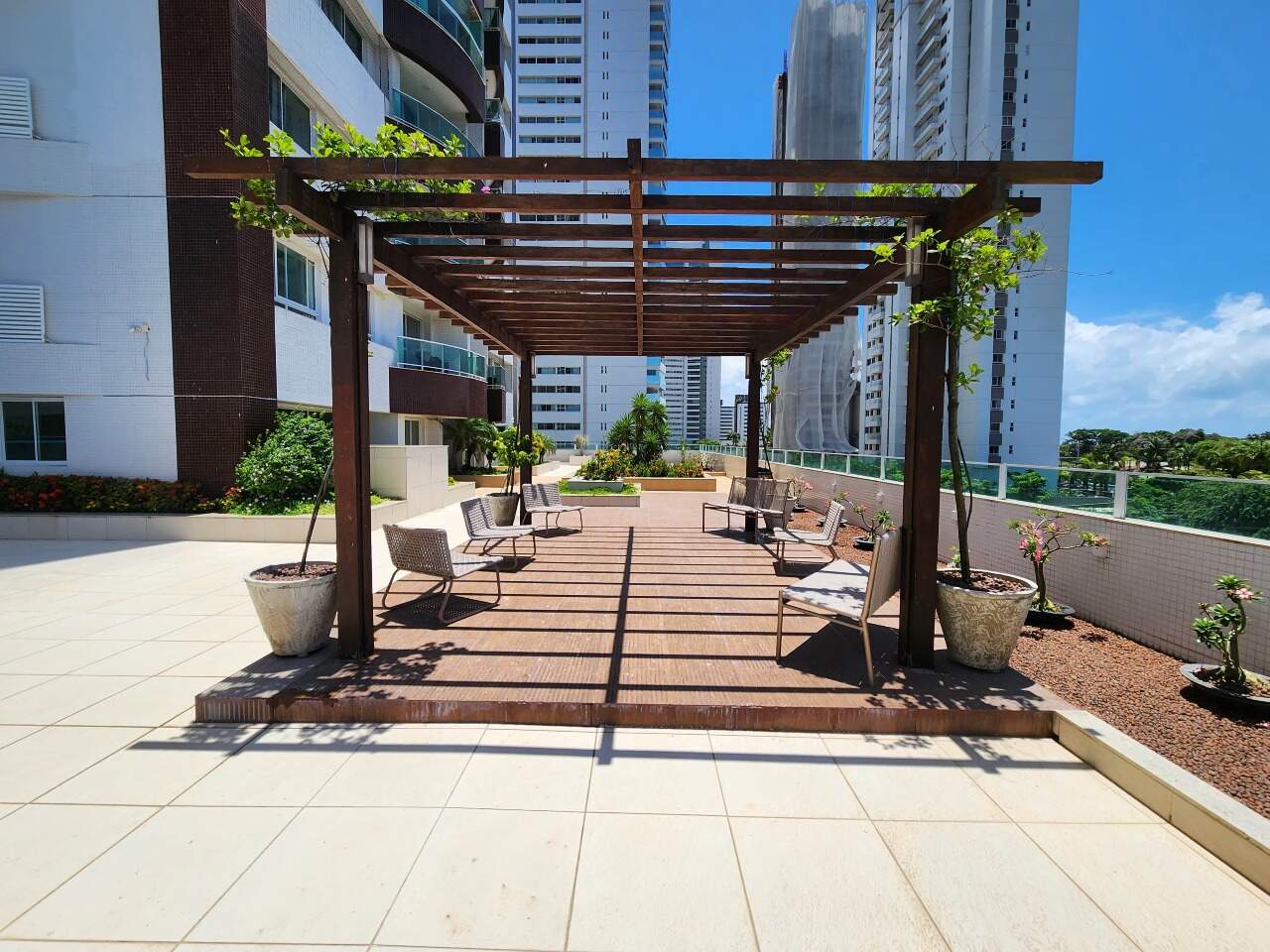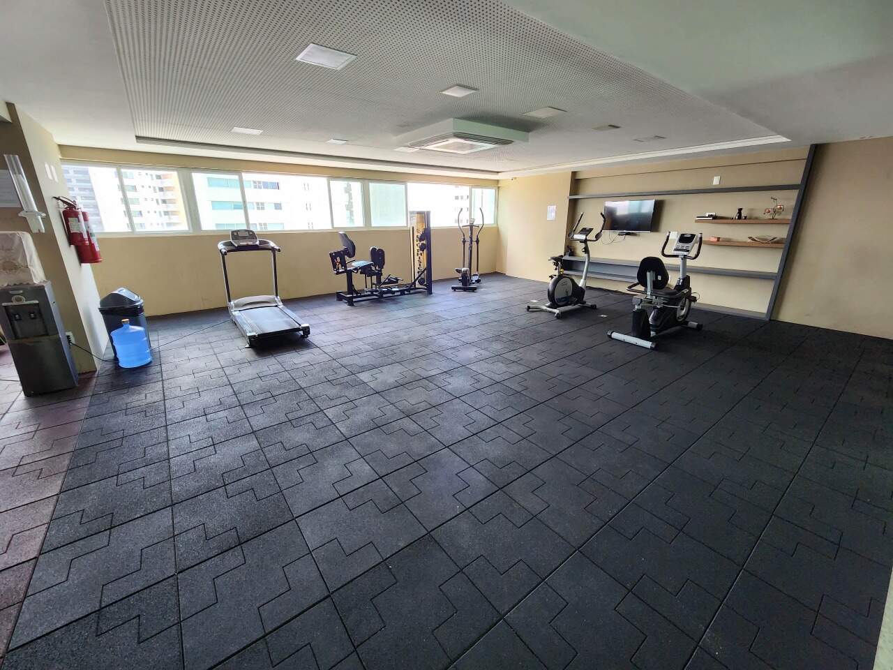 > Prédio com piscina, churrasqueira, playground, salão de festas, cinema, salão de beleza, jardim, quadra poliesportiva e academia;