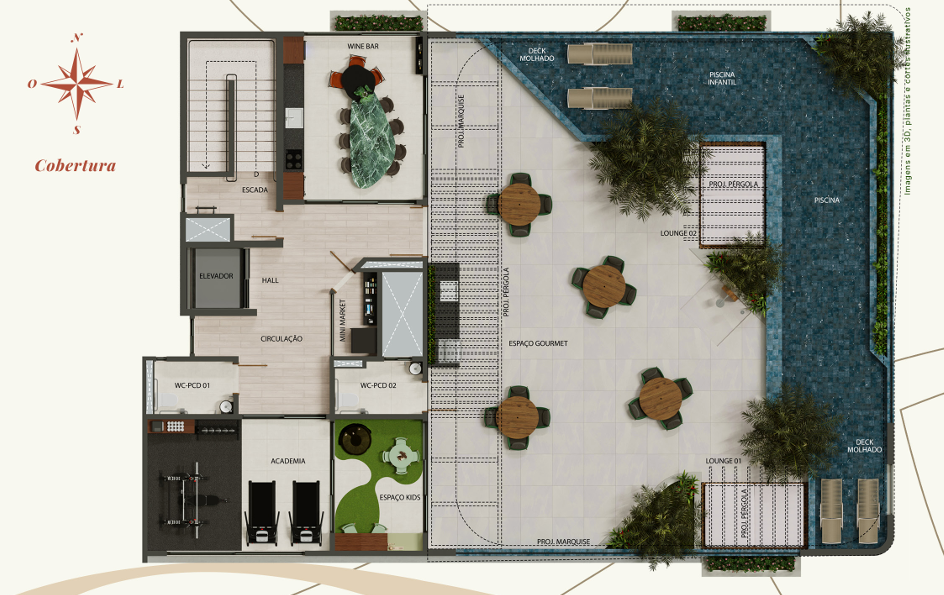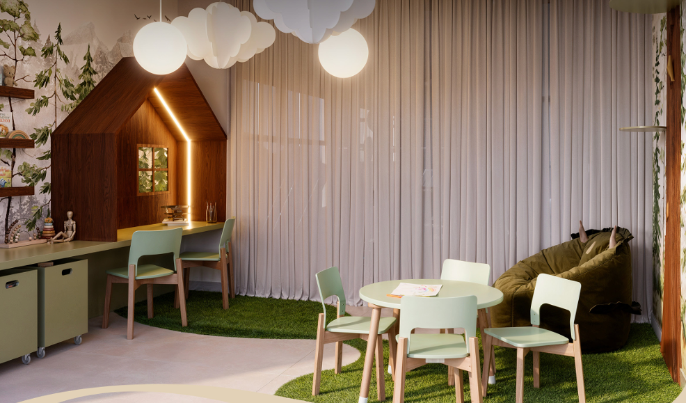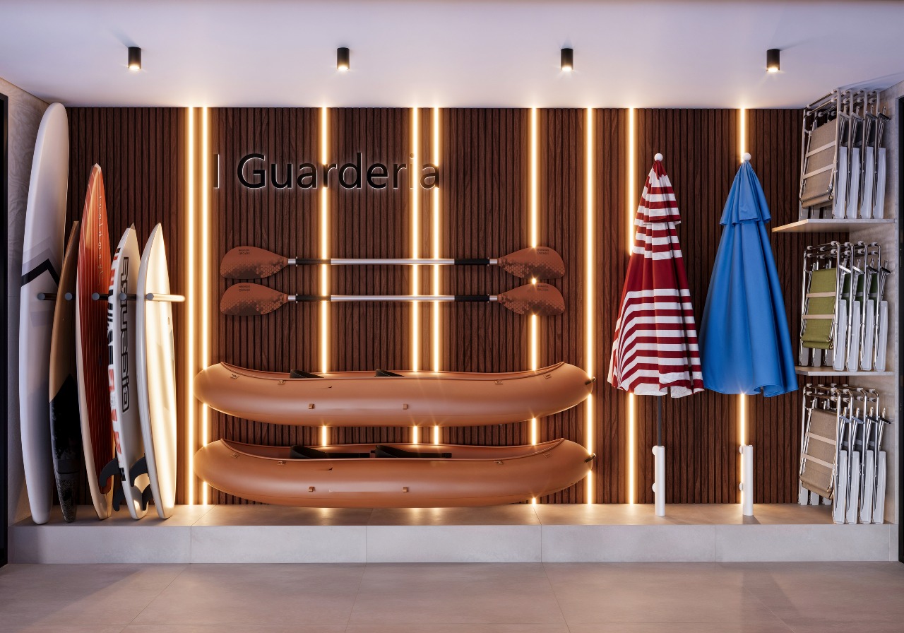 O empreendimento conta com uma área de lazer completa, pensada para todas as idades e estilos de vida, com storage, bicicletário, guardeira, coworking, academia, espaço kids, wine bar, espaço gourmet, piscina na cobertura e mini market.