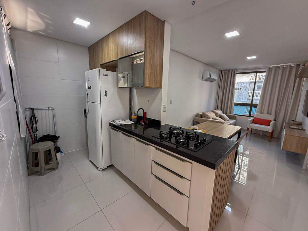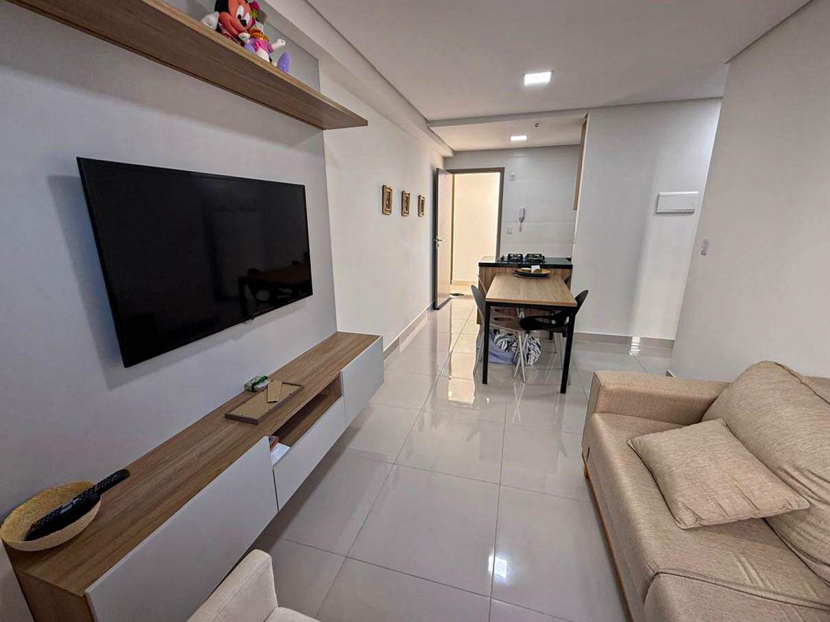Apartamento charmoso, com sala ampla para dois ambientes, cozinha prática integrada à área de serviço, quarto aconchegante e banheiro social bem distribuído.