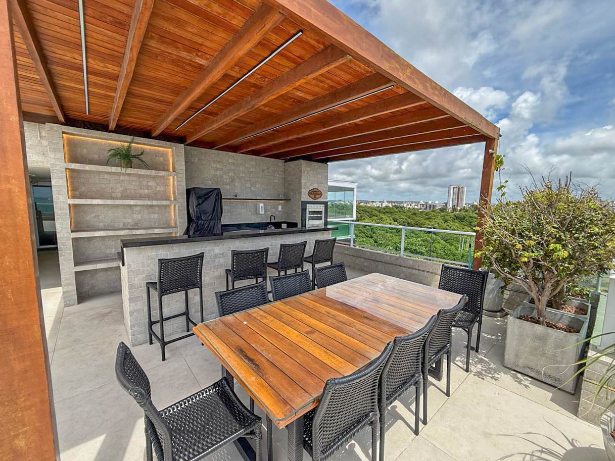 > Área de lazer com piscina, churrasqueira e espaço gourmet;