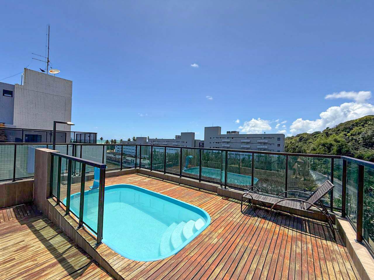 > Área de lazer com piscina e churrasqueira;