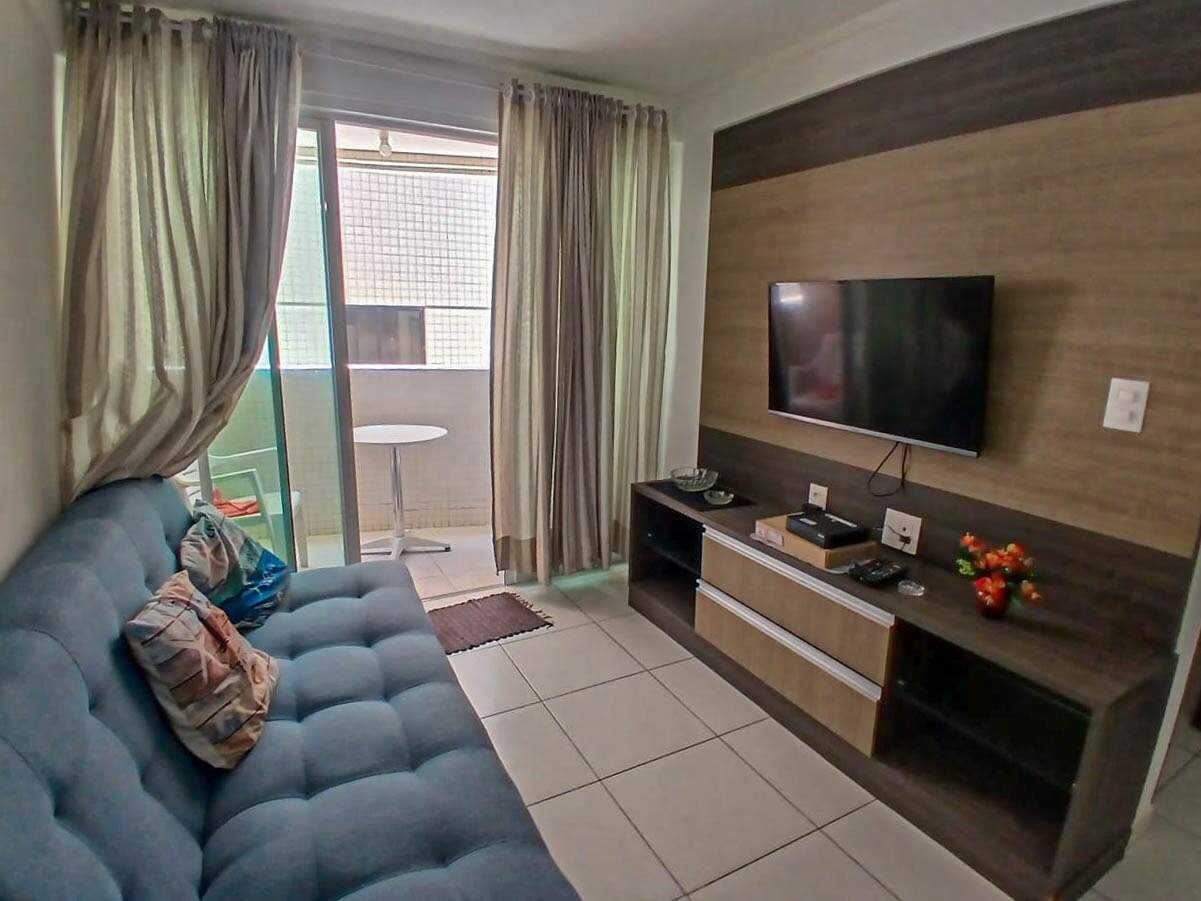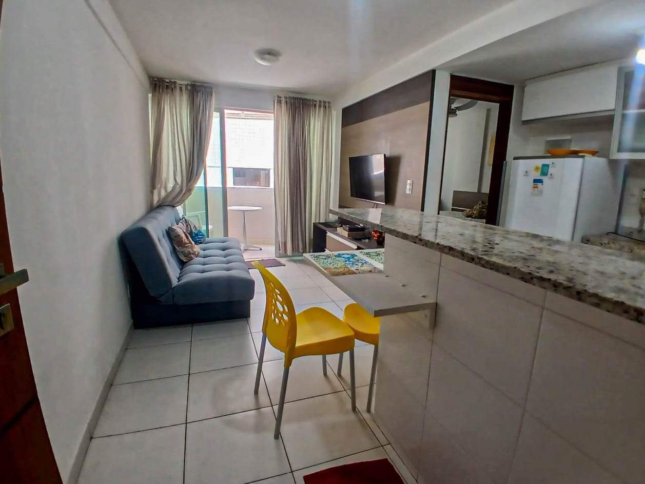Apartamento com sala acolhedora, varanda com vista lateral para o mar, cozinha aconchegante, um quarto confortável e um banheiro. Um espaço perfeito para quem busca praticidade e bem-estar pertinho da praia!