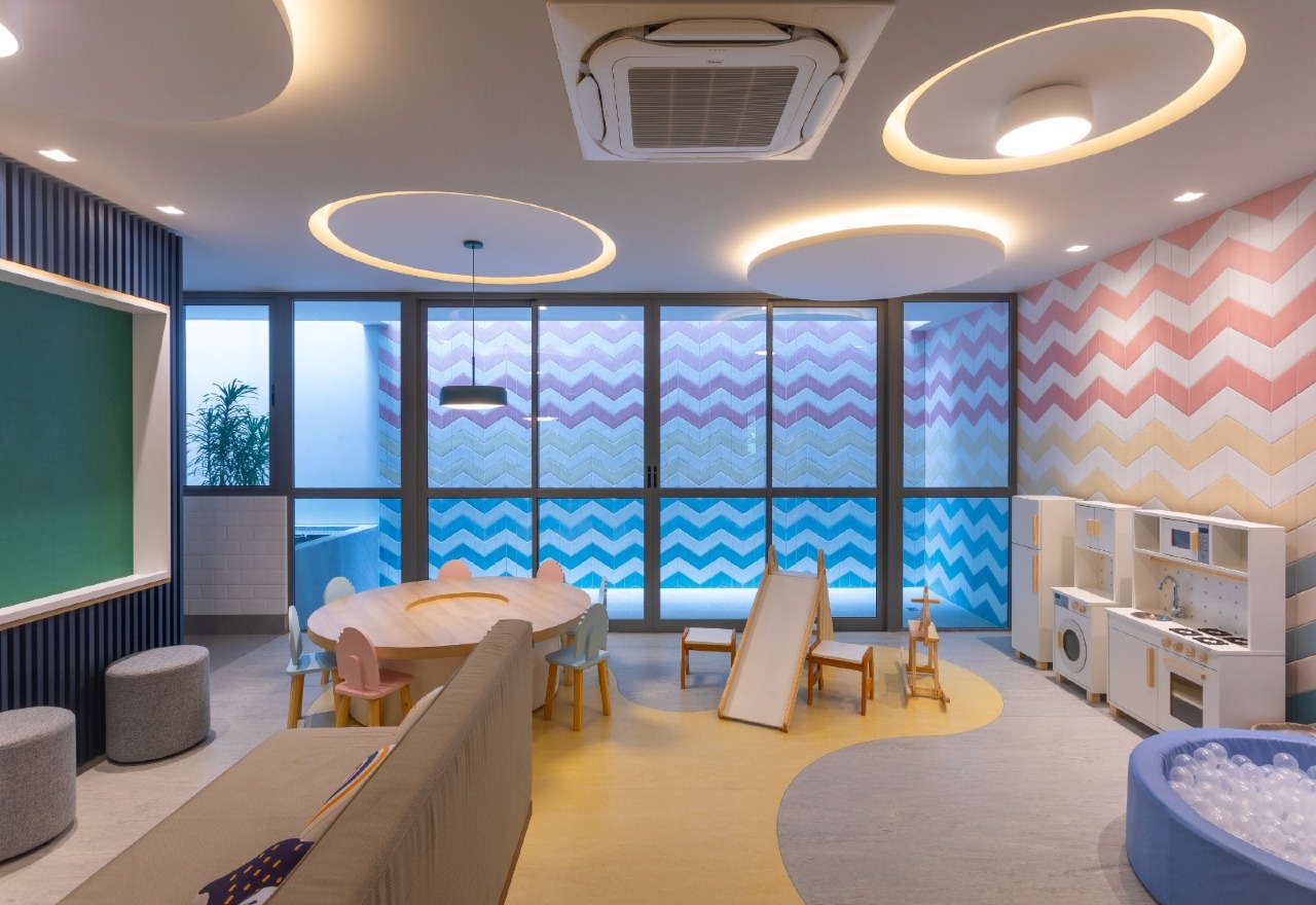 > Lavanderia, academia, hidromassagem, playground e salão de festa;