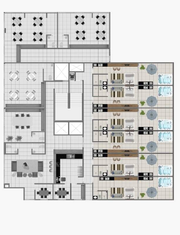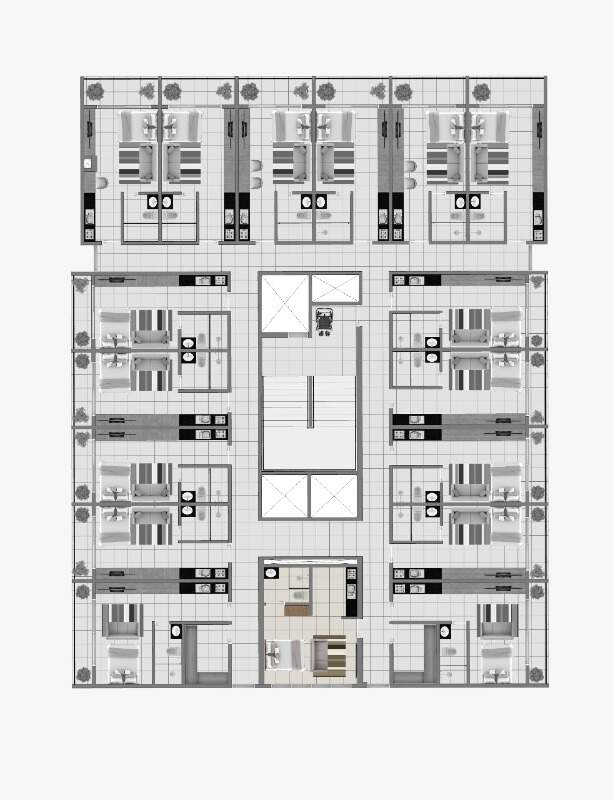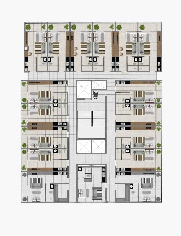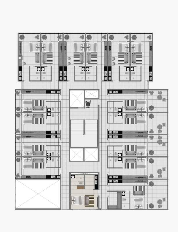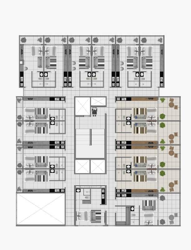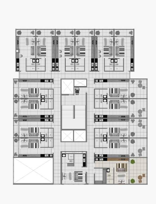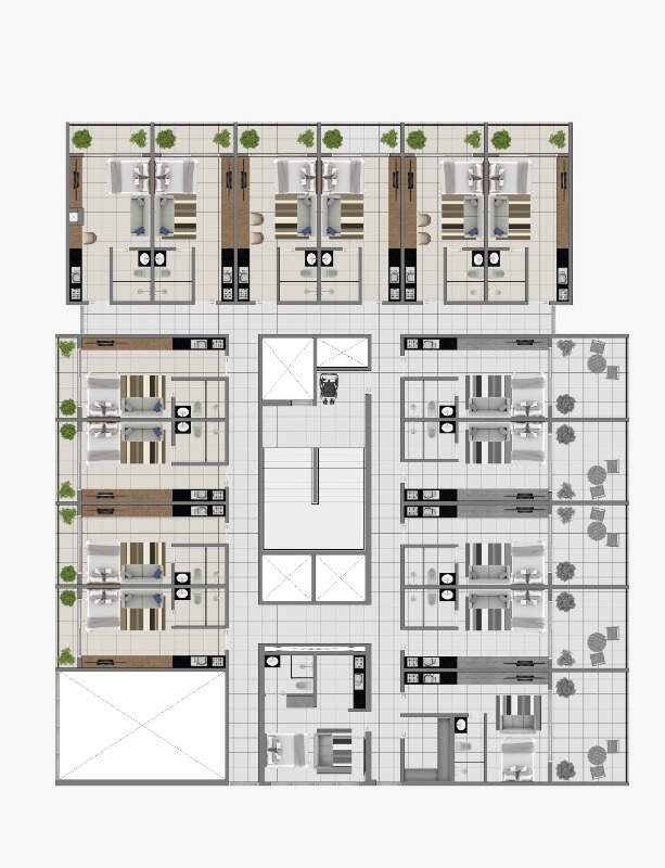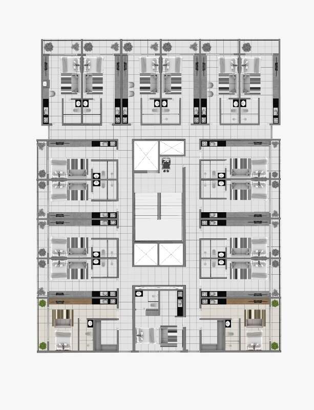 Todas unidades são flats com áreas entre 24m² e 44m². Com espaço para quarto, sala, cozinha e banheiro. Além disso, há opções de Flats Garden com área externa privativa para você aproveitar a vida com conforto e privacidade.