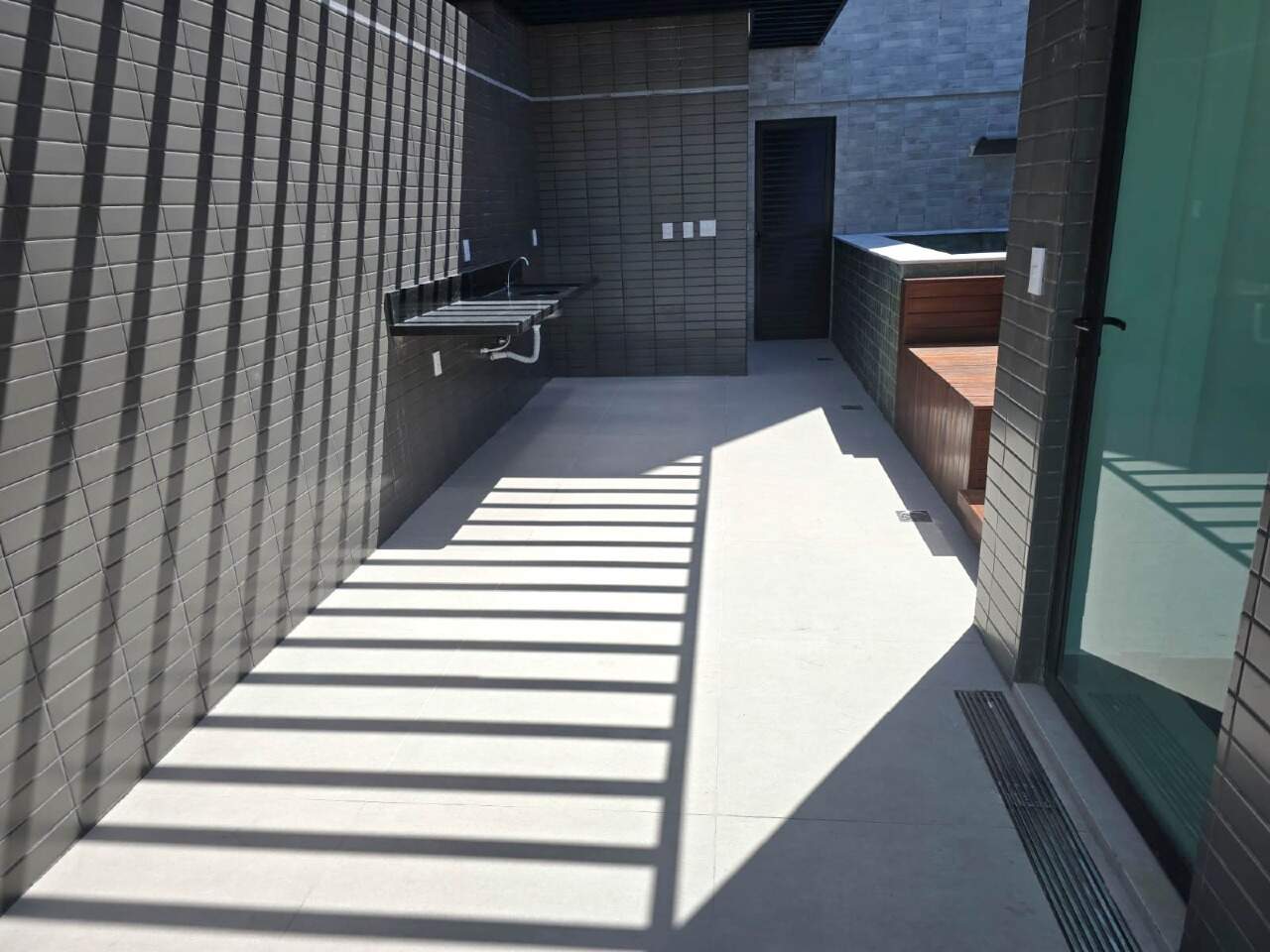 Coberturas Duplex com 104,20 m² a 114,17 m² possuindo dois quartos sendo um suíte, banheiro social, sala de estar/jantar, cozinha com área de serviço integrada, terraço com área gourmet e piscina privativa.