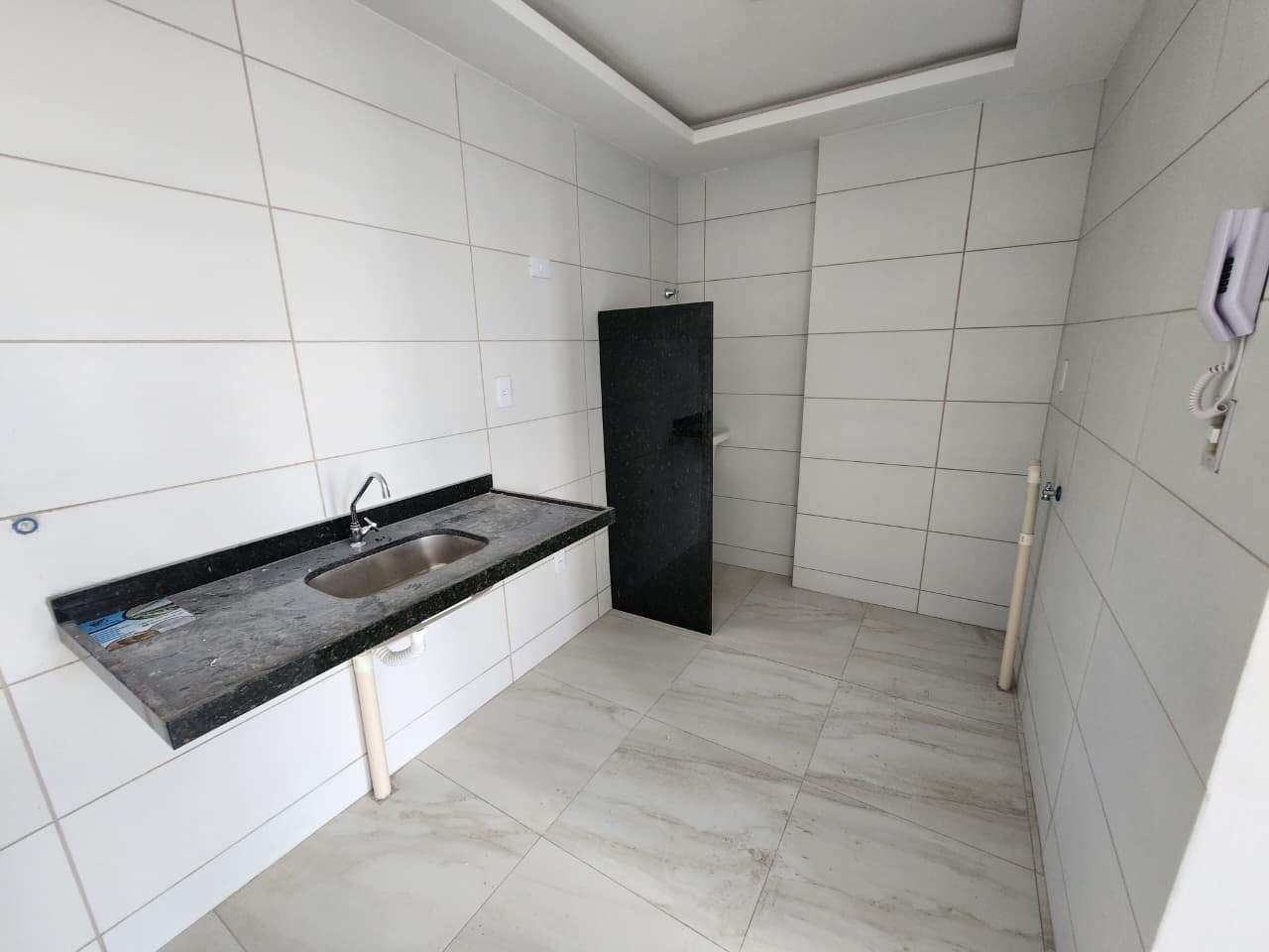 Apartamentos com 72m² possuindo três quartos sendo um suíte, banheiro social, sala de estar/jantar, cozinha com área de serviço integrada e varanda.