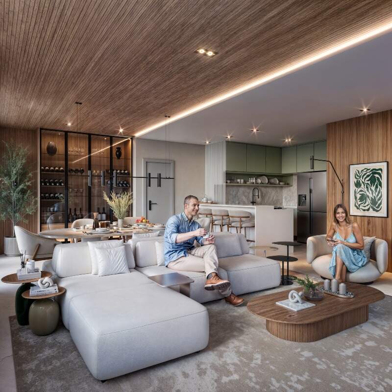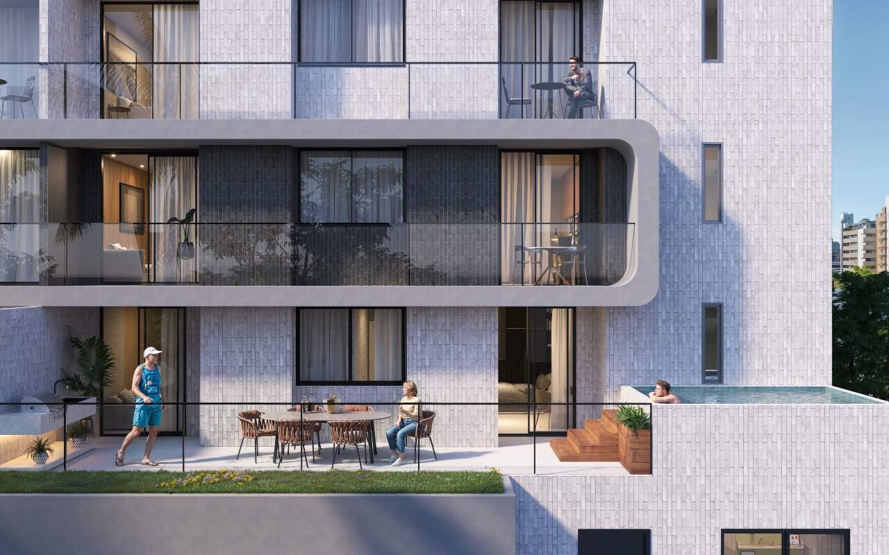 Com opções de plantas diferentes, sendo; Apartamentos Garden com 67m² a 108m² possuindo dois ou três quartos sendo uma suíte, banheiro social, sala de estar/jantar, cozinha com área de serviço integrada e área externa gourmet privativa com piscina e churrasqueira;