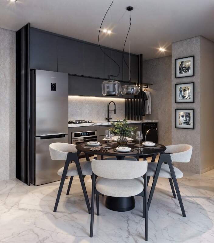 Cobertura Duplex com 84m² possuindo dois quartos sendo um suíte, banheiro social, sala de estar/jantar, cozinha com área de serviço integrada, terraço com área gourmet, churrasqueira e piscina privativa.