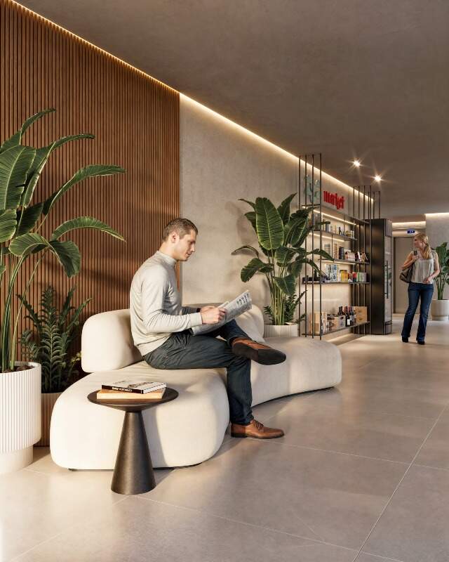 O empreendimento tem uma vasta área de lazer com piscina com prainha, 2 áreas gourmet com grill, lounge, lobby, delivery, market, salão de festas, guarderia, bicicletário, espaço kids, playground, pet shower, academia, elevador e muito mais para garantir a sua diversão.
