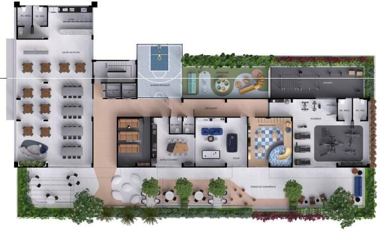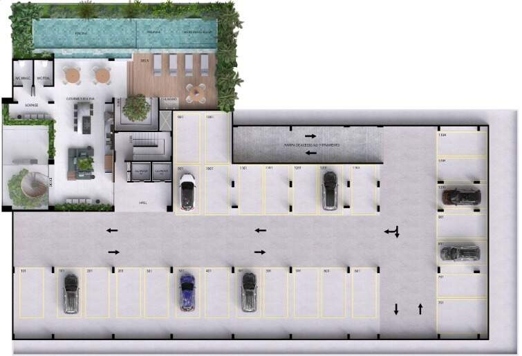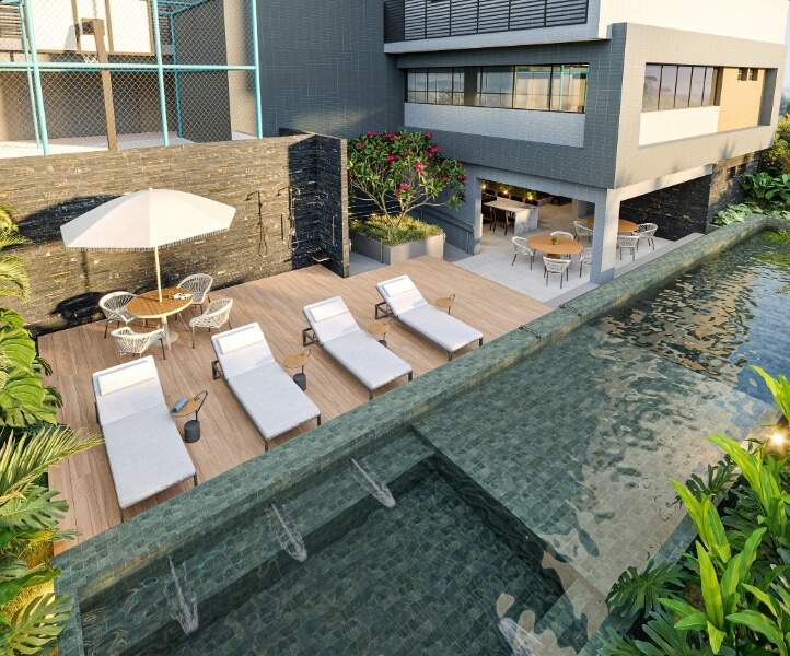 O empreendimento tem uma vasta área de lazer com piscina, hidromassagem, espaço gourmet, rooftop garden, bicicletário, lounges, salão de festas, mini mercado, academia, quadra basquete, brinquedoteca, playground, sala de jogos, home cinema, elevador e muito mais para garantir a sua diversão.