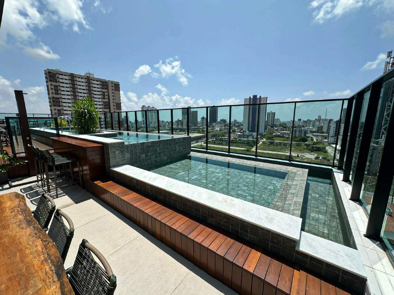 > Área de lazer com piscina, churrasqueira e espaço gourmet;