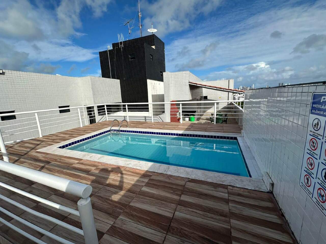 > Possui área de lazer com piscina e churrasqueira;