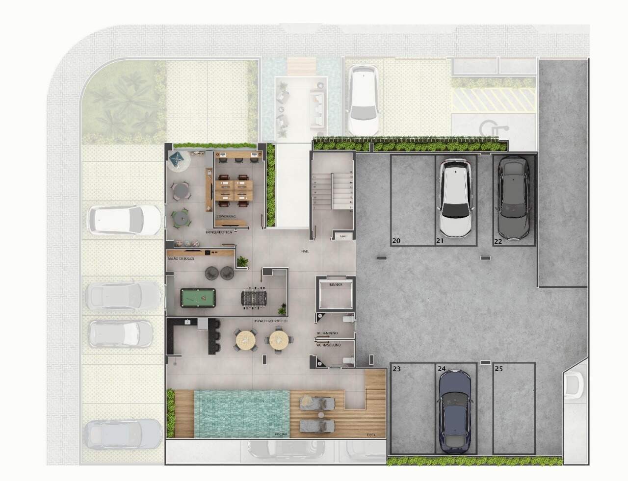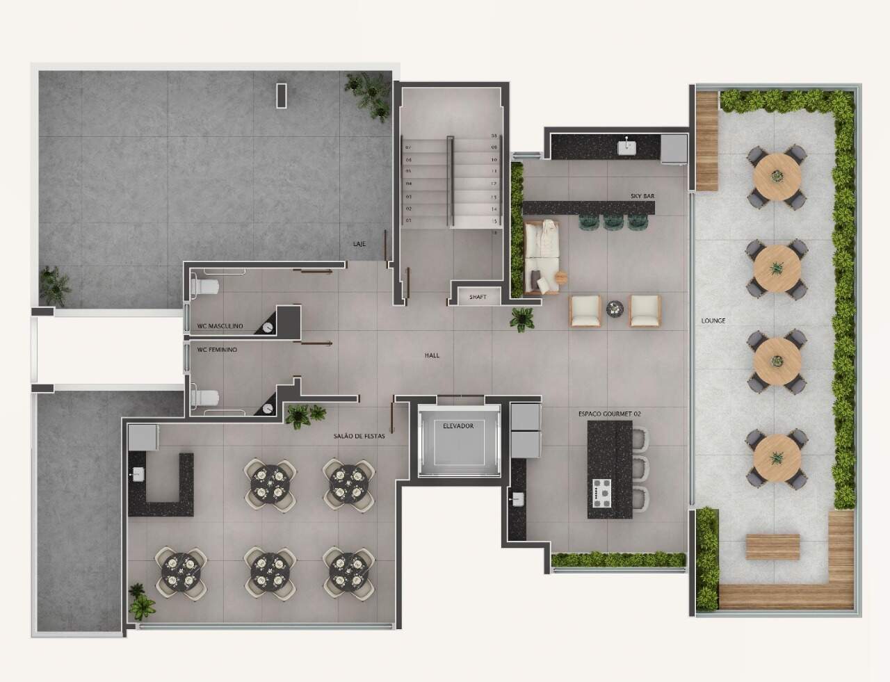 O empreendimento conta com bicicletário, coworking, salão de festas, salão de jogos, brinquedoteca, espaço gourmet, piscina, espaço gourmet, elevador e mais: