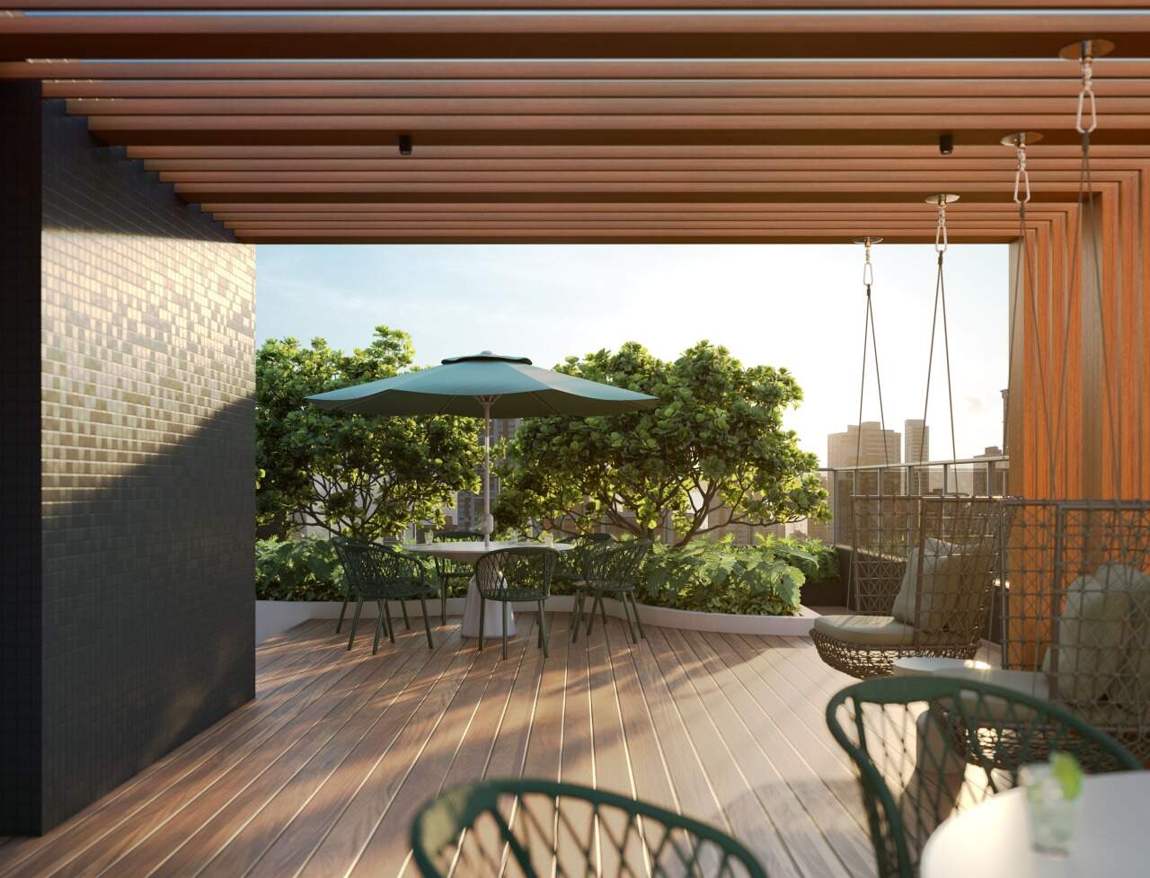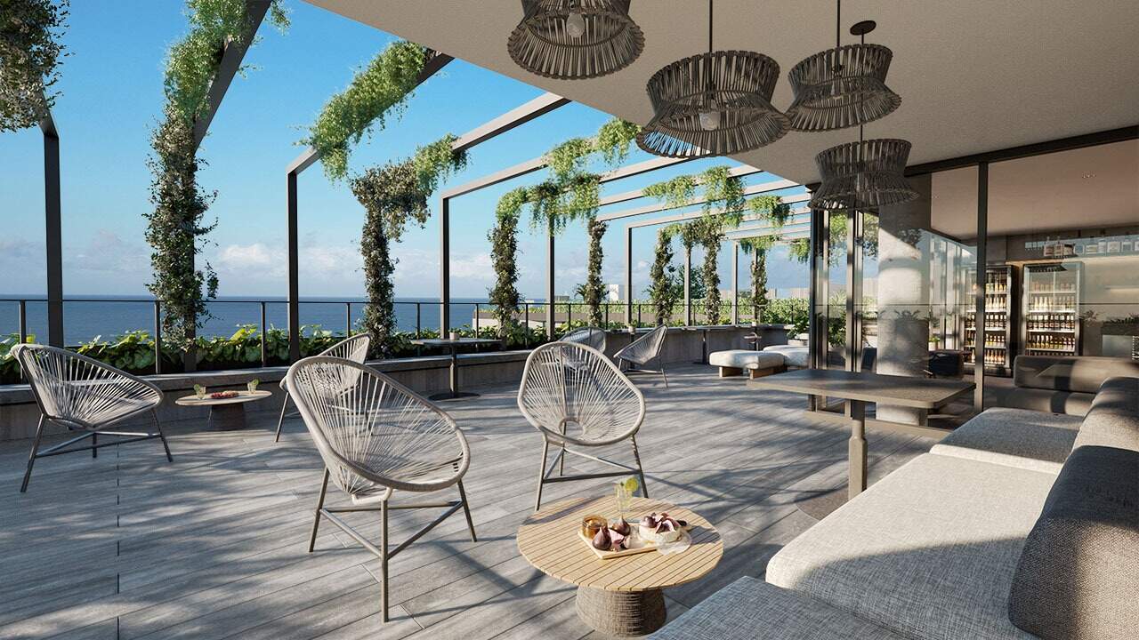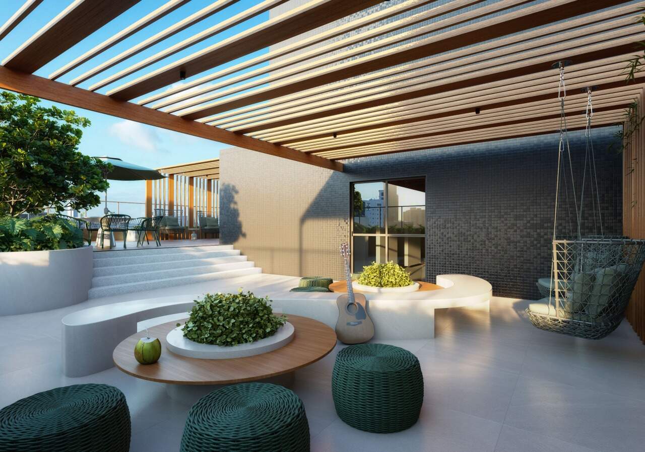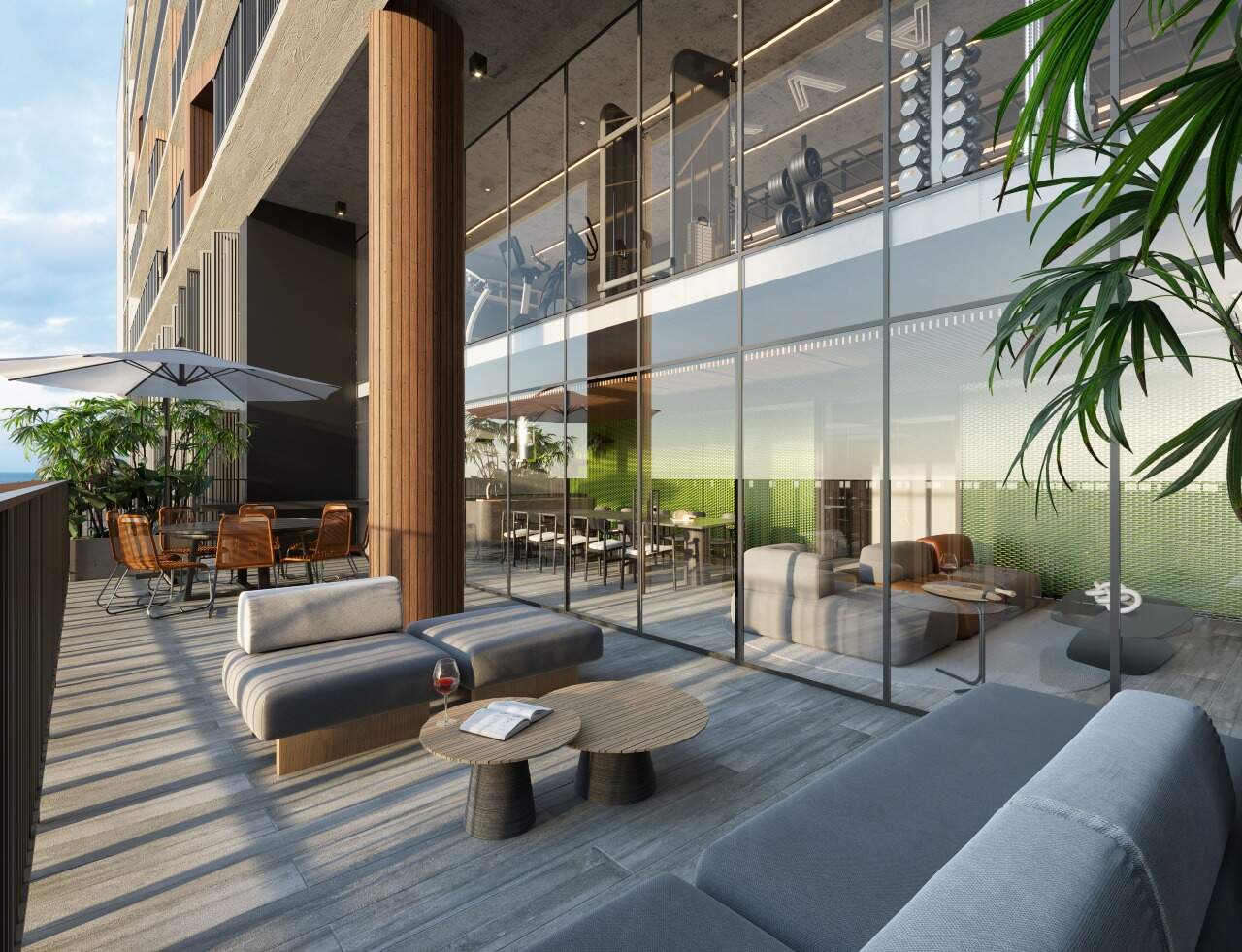 O empreendimento tem uma vasta área de lazer com piscina, espaços gourmet e espaços grill, Spa, lavanderia, mini mercado, bar mirante, coworking, restaurantes, lojas, academia, elevador e muito mais para garantir a sua diversão.