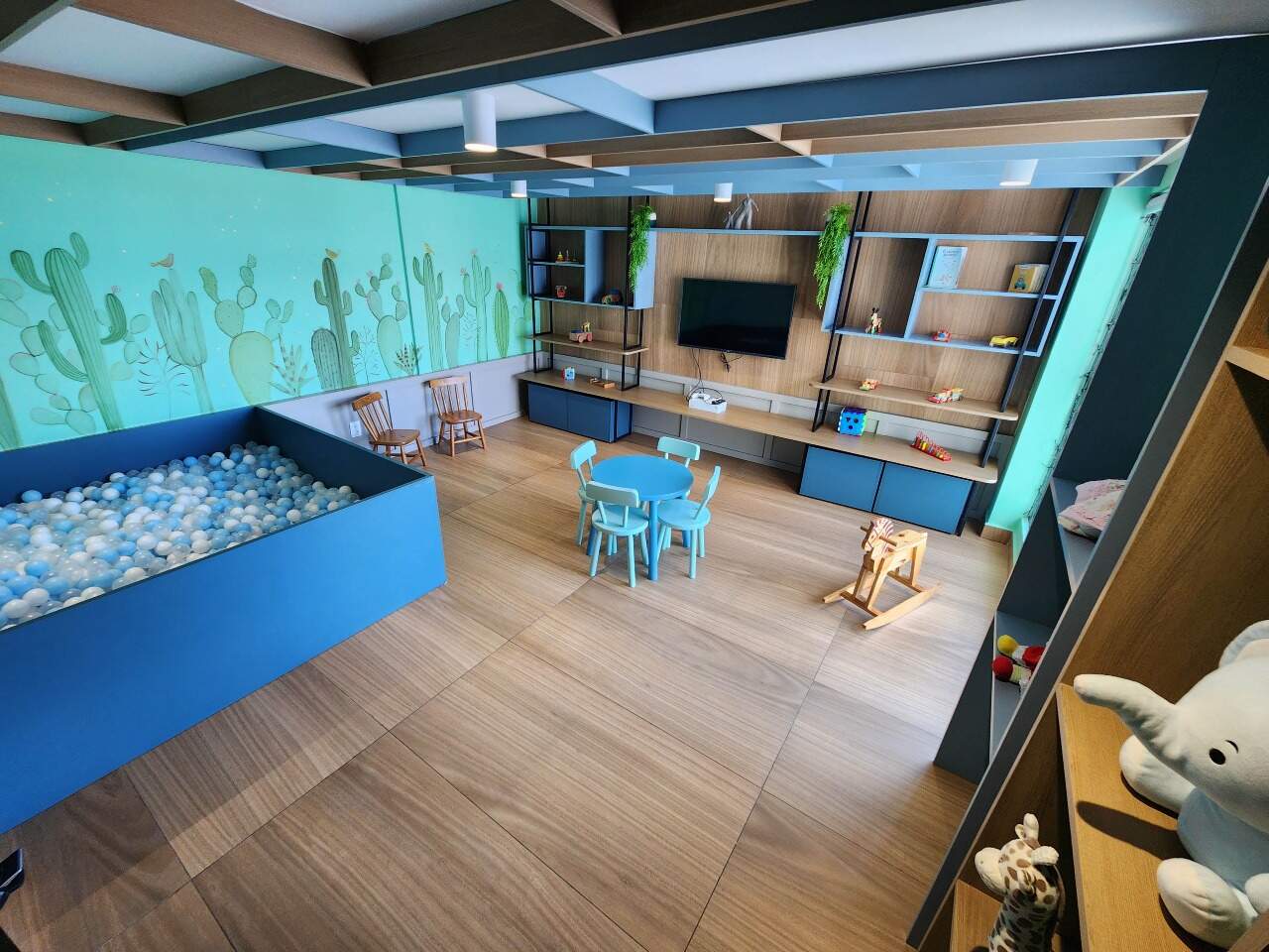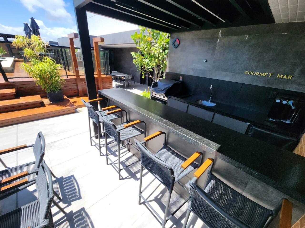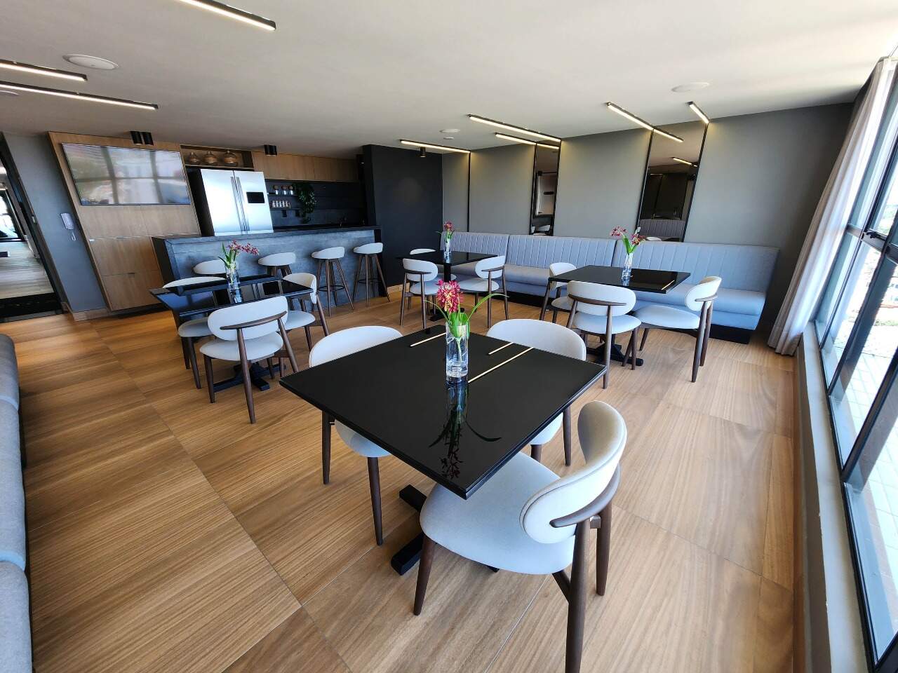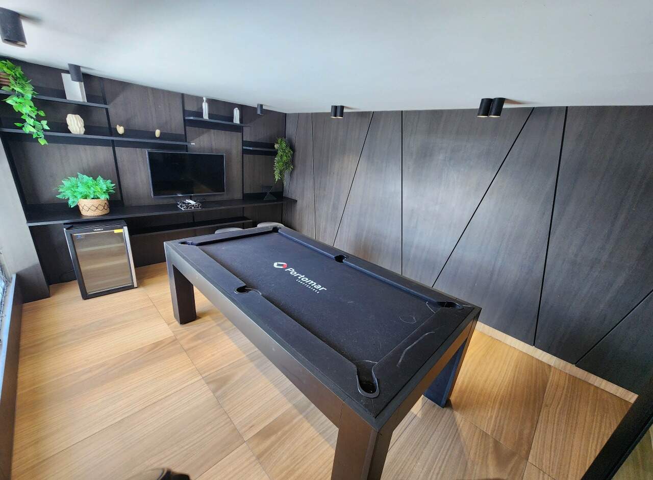 > Área de lazer com piscina, churrasqueira e espaço gourmet;
