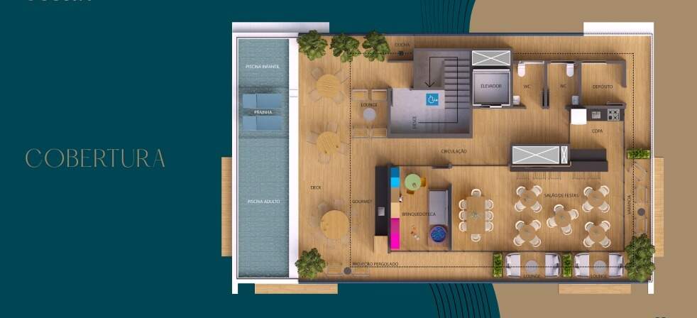 O empreendimento tem uma área de lazer com piscina, espaço gourmet, brinquedoteca, salão de festas, churrasqueira, bicicletário, playground com praça e elevador para garantir a sua diversão.