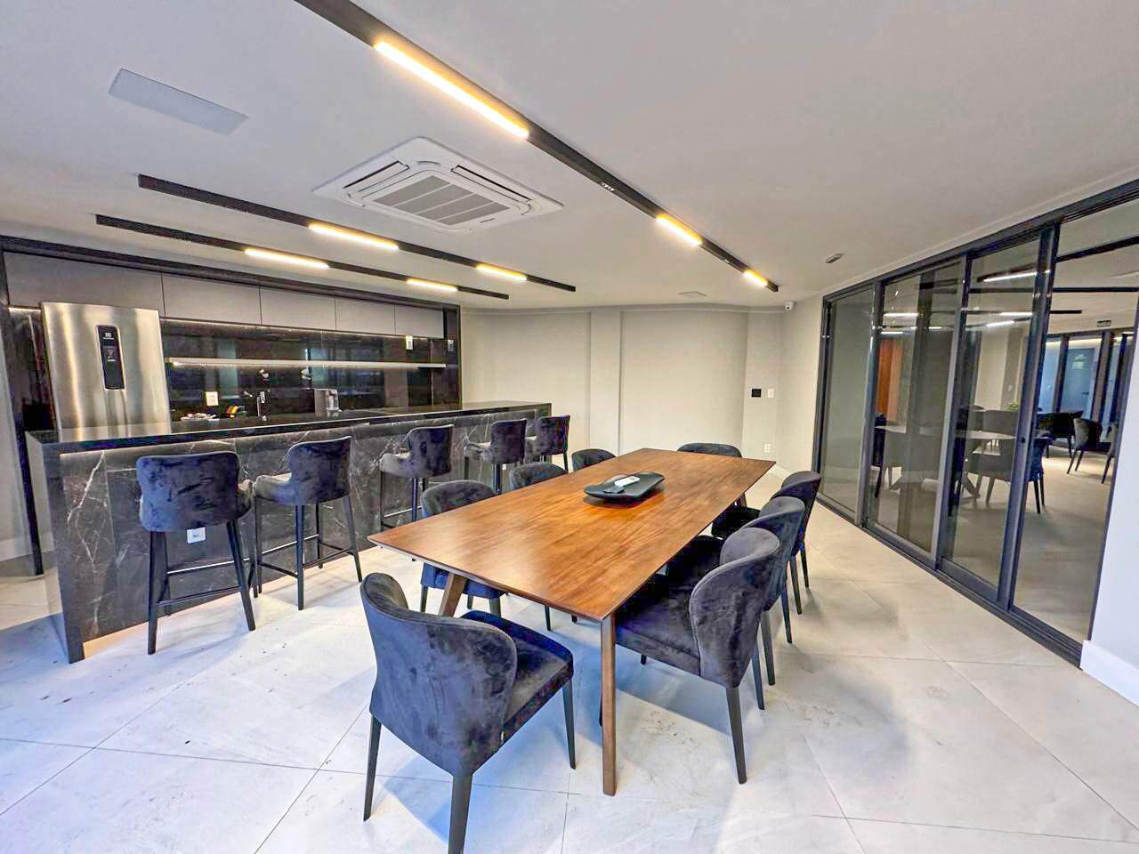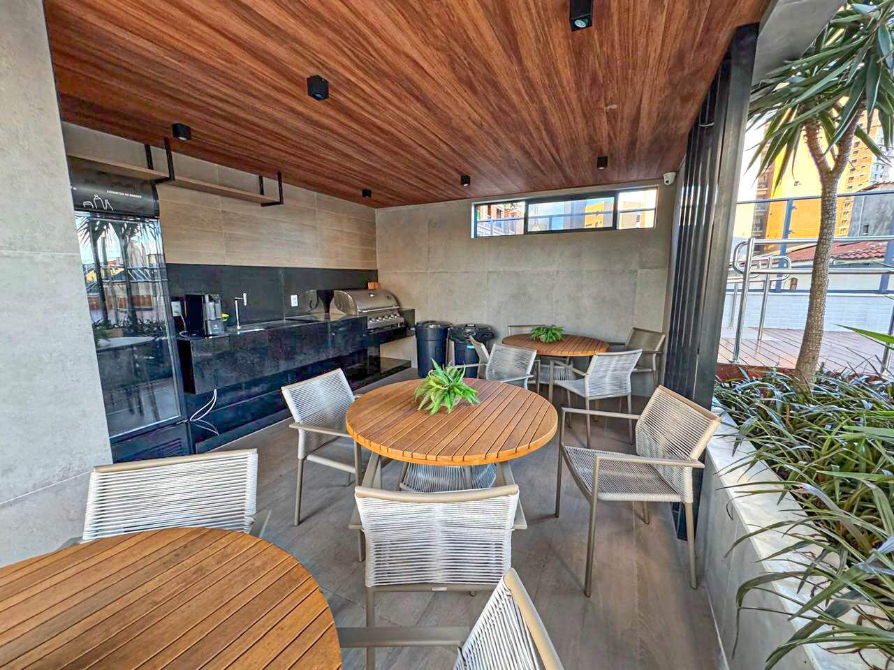 > Área de lazer com piscina, churrasqueira e espaço gourmet;