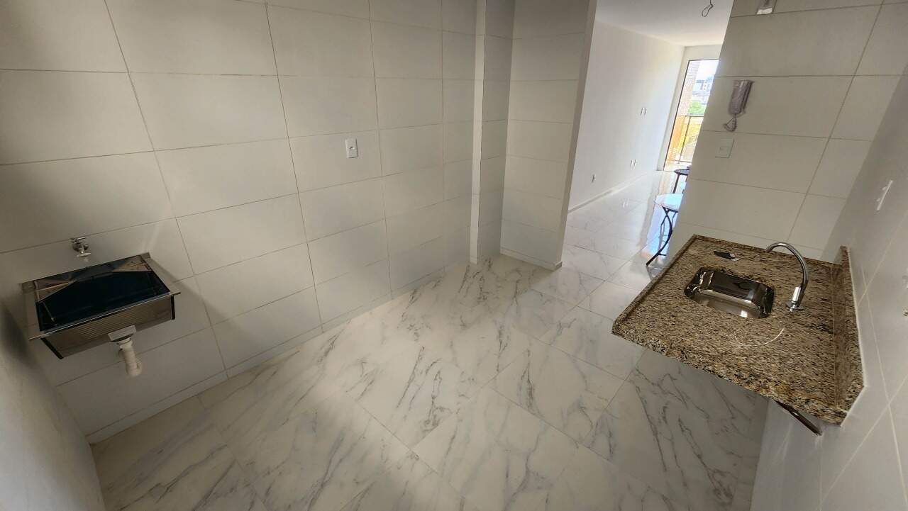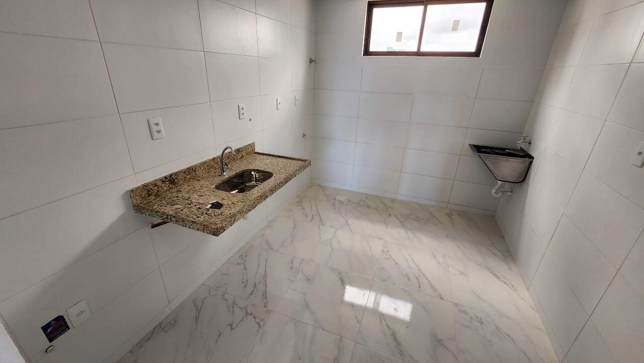 Apartamentos com 57,20m² a 60,00m² possuindo dois quartos sendo um suíte, fechadura digital, sala de estar/jantar, banheiro social, cozinha com área de serviço integrada e varanda