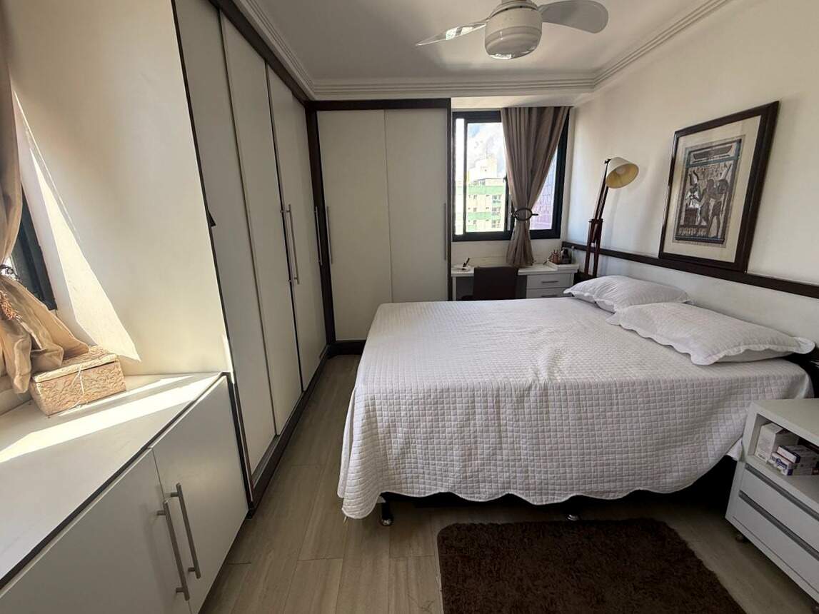 Esse apê conta com sala ampla para até três ambientes, varanda espaçosa, cozinha ampla, área de serviço separada, dependência completa de empregada e dois quartos sendo um suíte. Demais características;