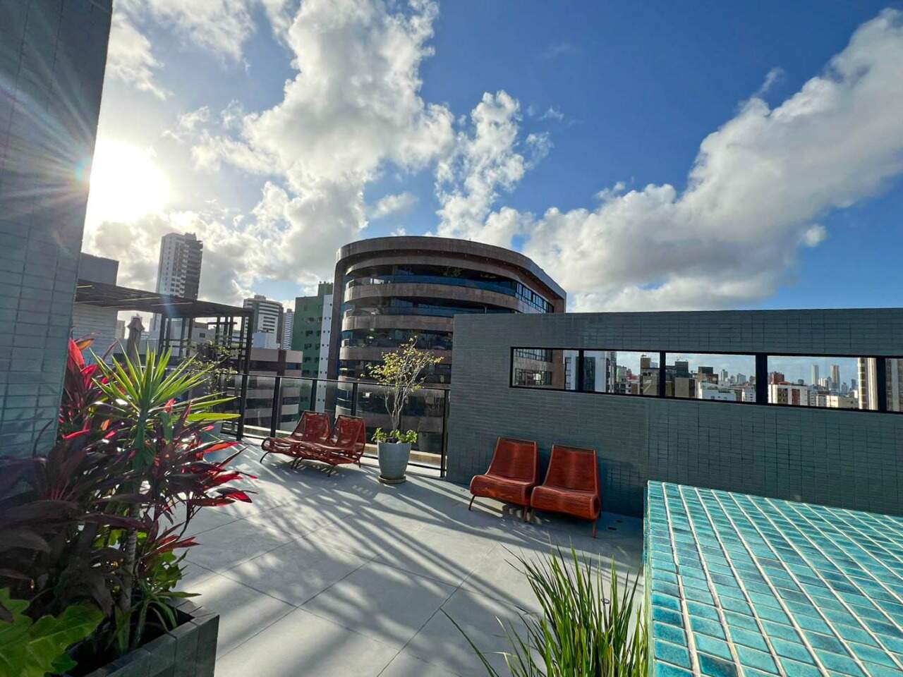 > Área de lazer com piscina, espaço gourmet e churrasqueira;