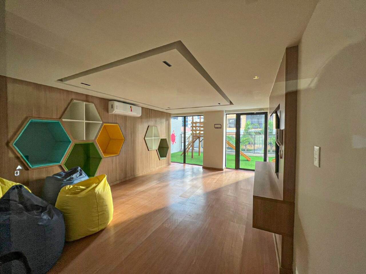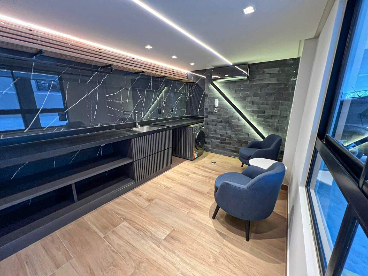 > Lavanderia, academia, playground e salão de festa;