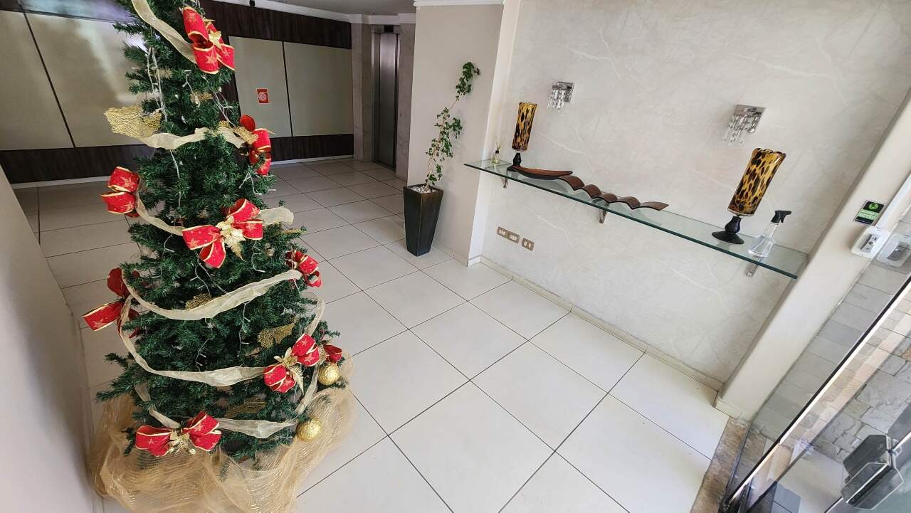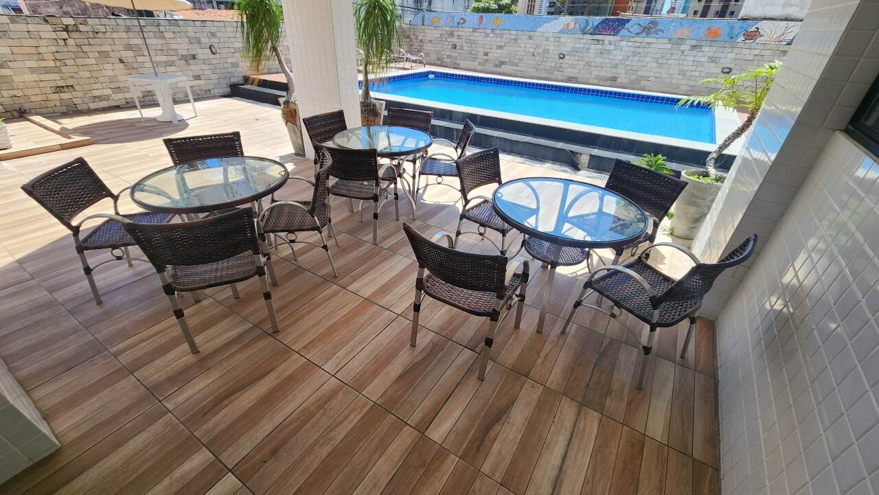 > O prédio conta com área de lazer com piscina e espaço gourmet;