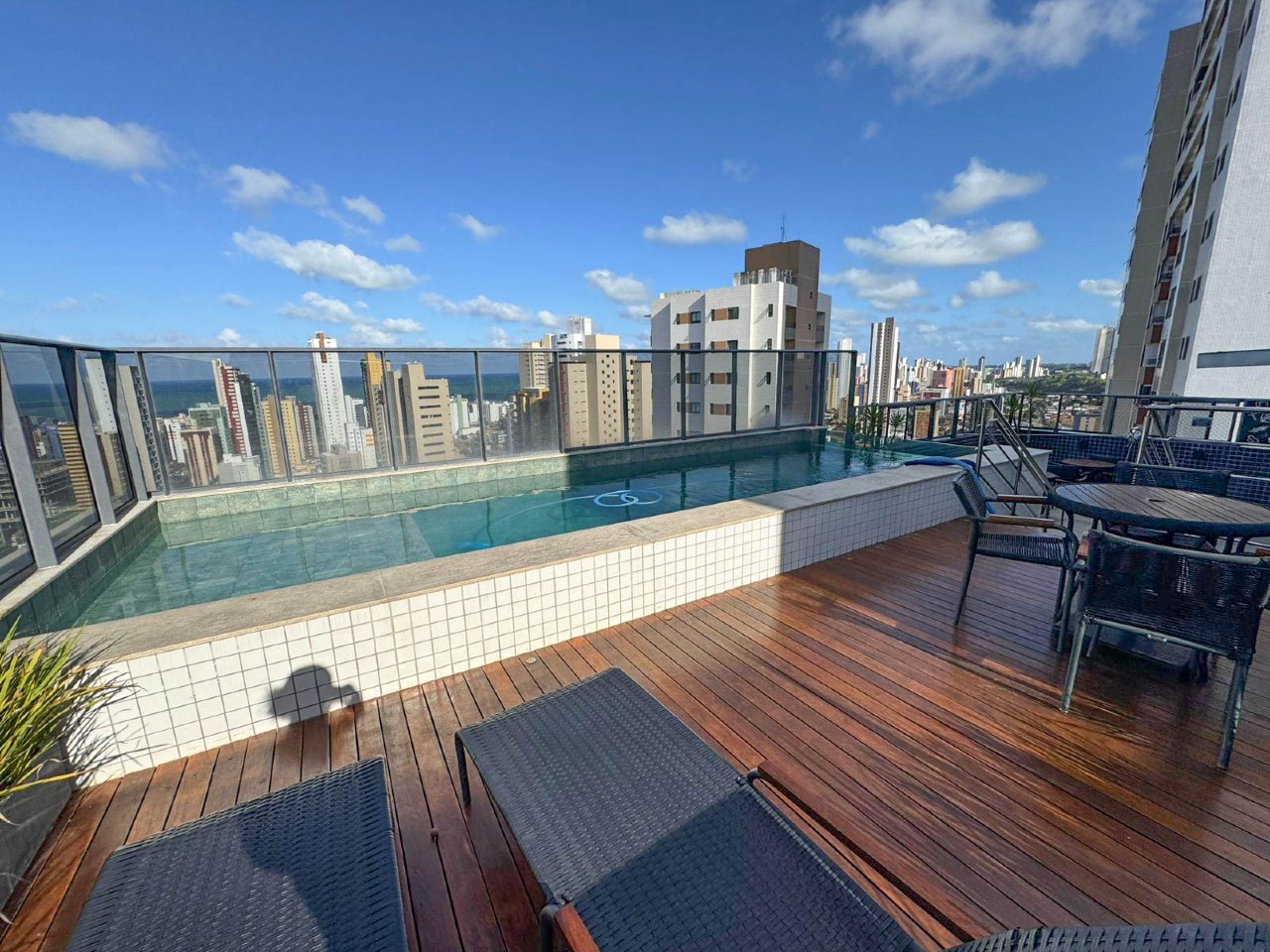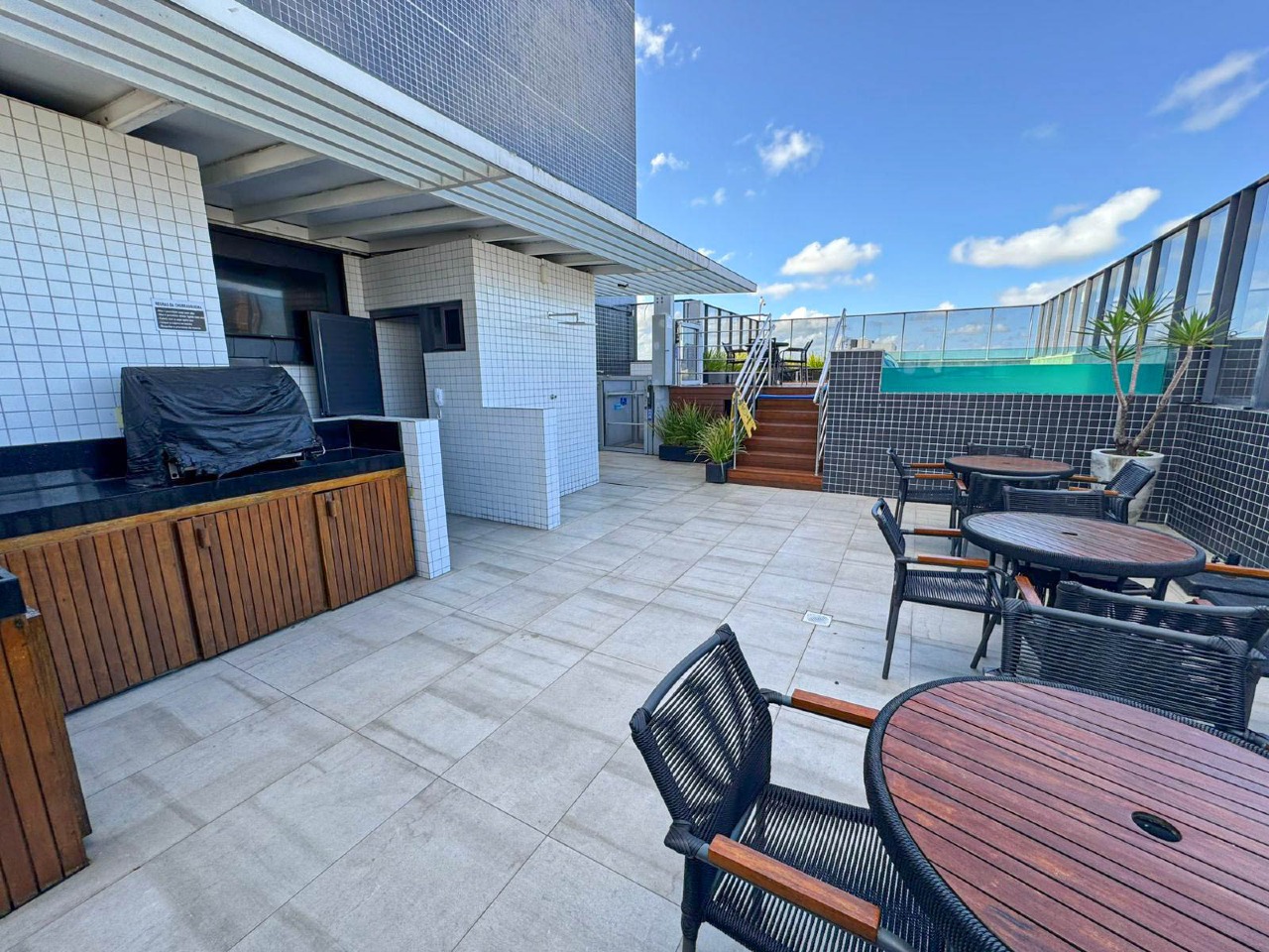 > Área de lazer com piscina e espaço gourmet com churrasqueira;