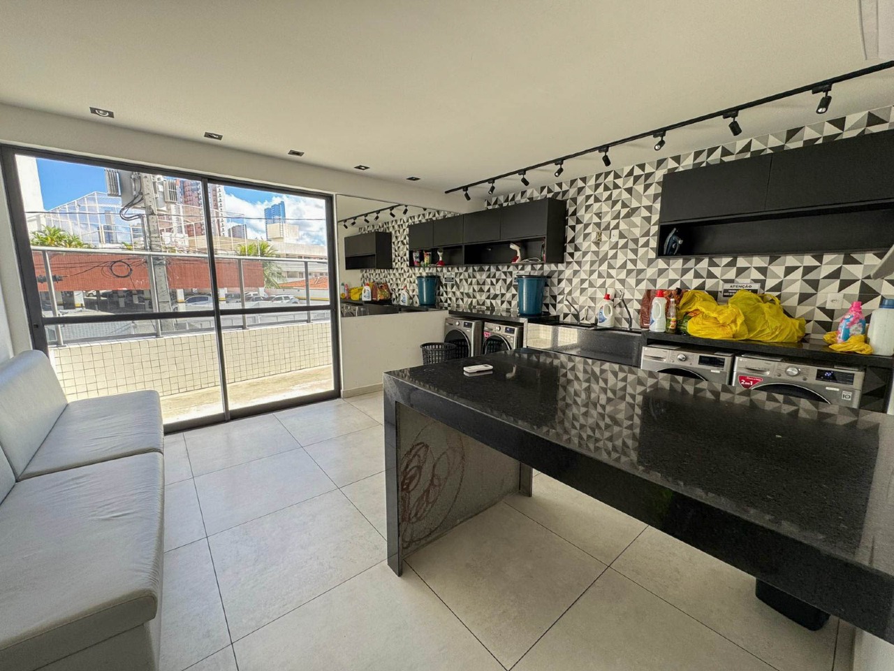 > Salão de festas, academia e lavanderia;