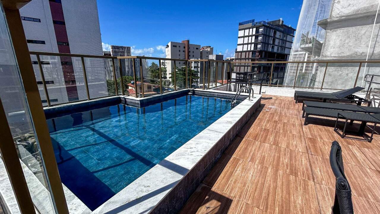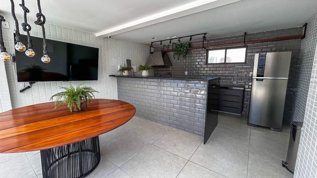 > Área de lazer com piscina, churrasqueira e espaço gourmet;