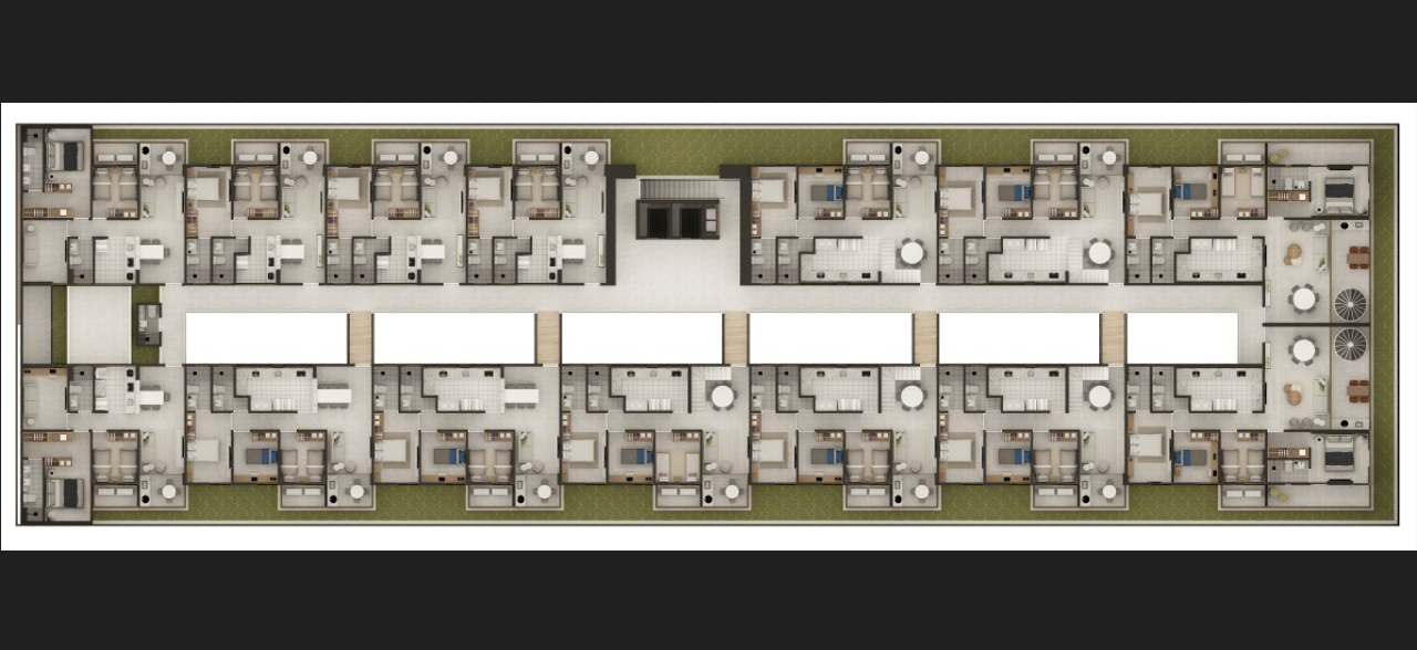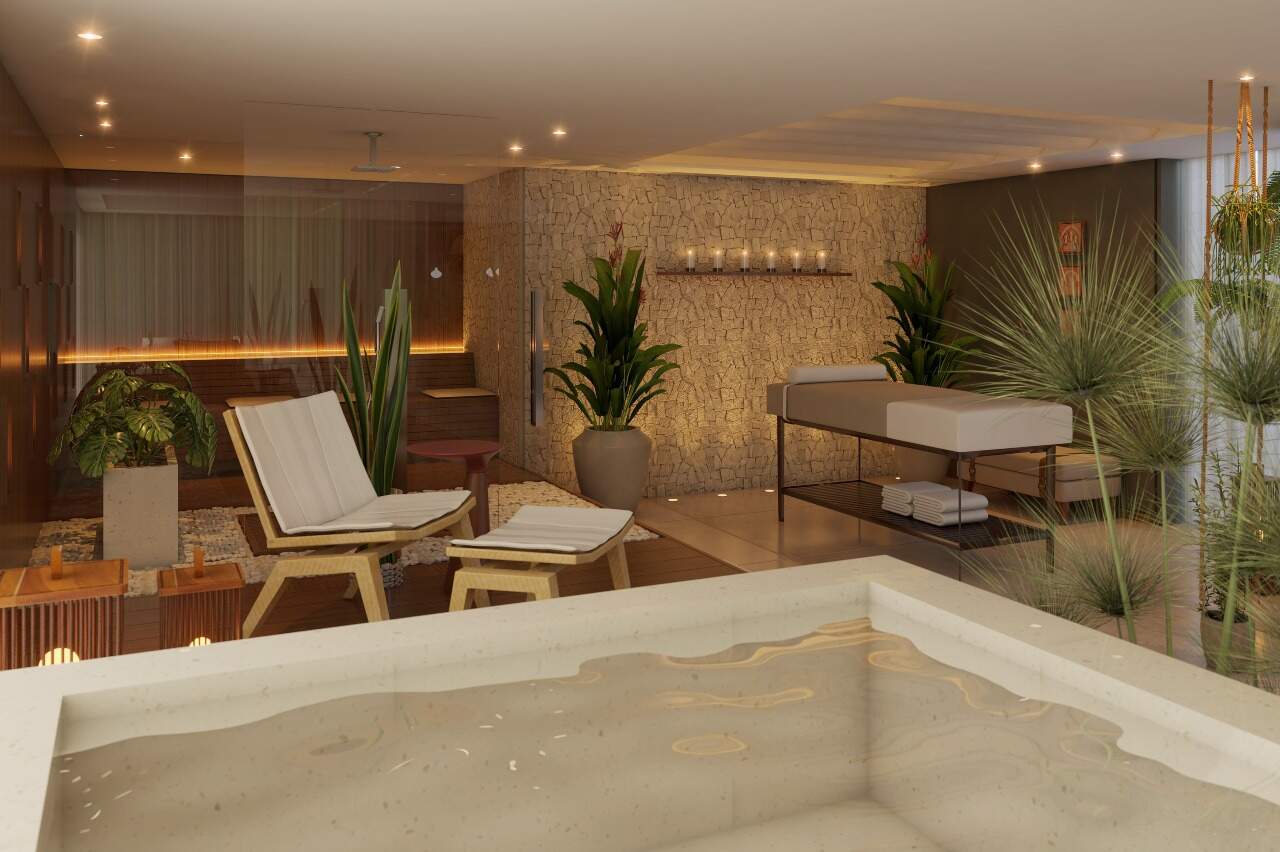 > Prédio com piscina adulto e infantil, espaço gourmet, churrasqueiras, Spa, hidromassagem, guarderia, sauna, minimercado, recepção, estar externo, lavanderia, coworking, salão de festas, salão de jogos, playground, academia e brinquedoteca;