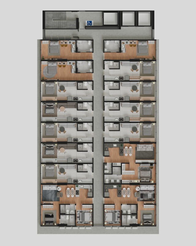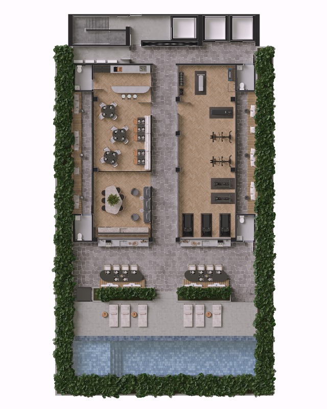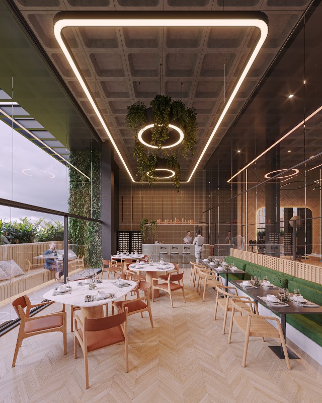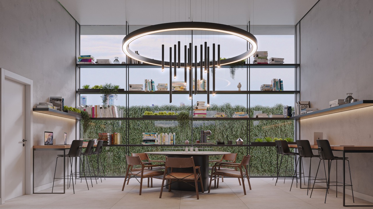 O empreendimento tem uma vasta área de lazer com piscina, espaços gourmet, restaurante, rooftop, wine bar, praça elevada, salão de jogos, mini market, coworking, lavanderia, academia, elevador e muito mais para garantir a sua diversão.
