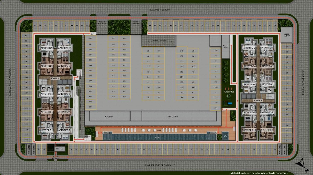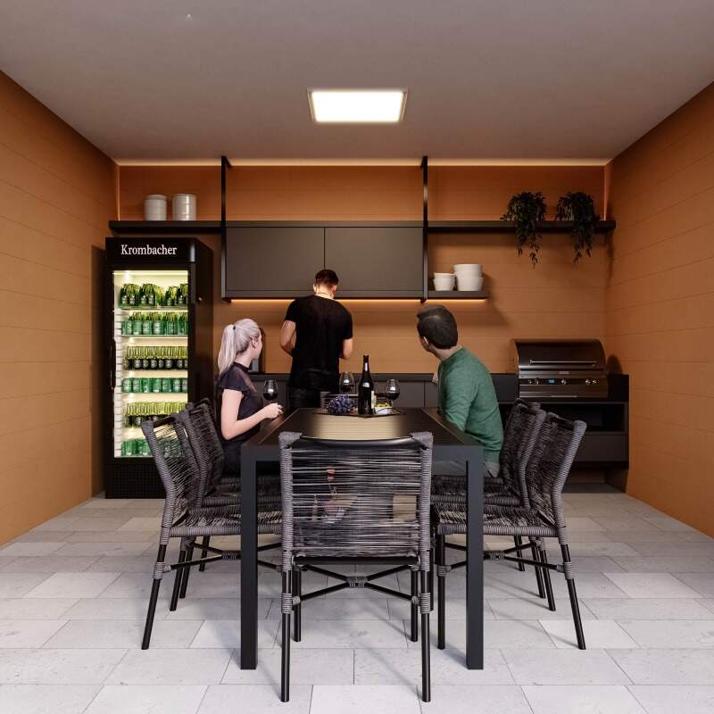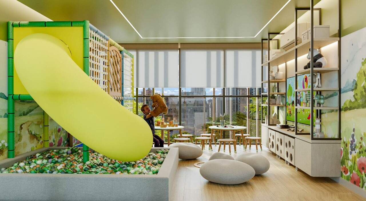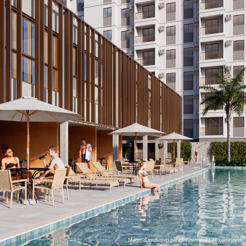 O empreendimento tem uma vasta área de lazer com piscinas diversas, espaços gourmet, espaço kids, salão de jogos, playground, market place, churrasqueiras, bar molhado, academia, elevador e muito mais para garantir a sua diversão.