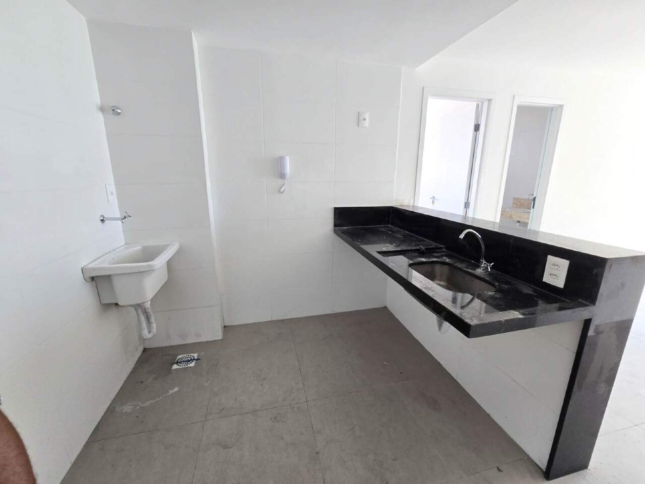 Apartamentos com 62,36 m² possuindo três quartos sendo um suíte, sala de estar/jantar, banheiro social, cozinha com área de serviço integrada e varanda gourmet;