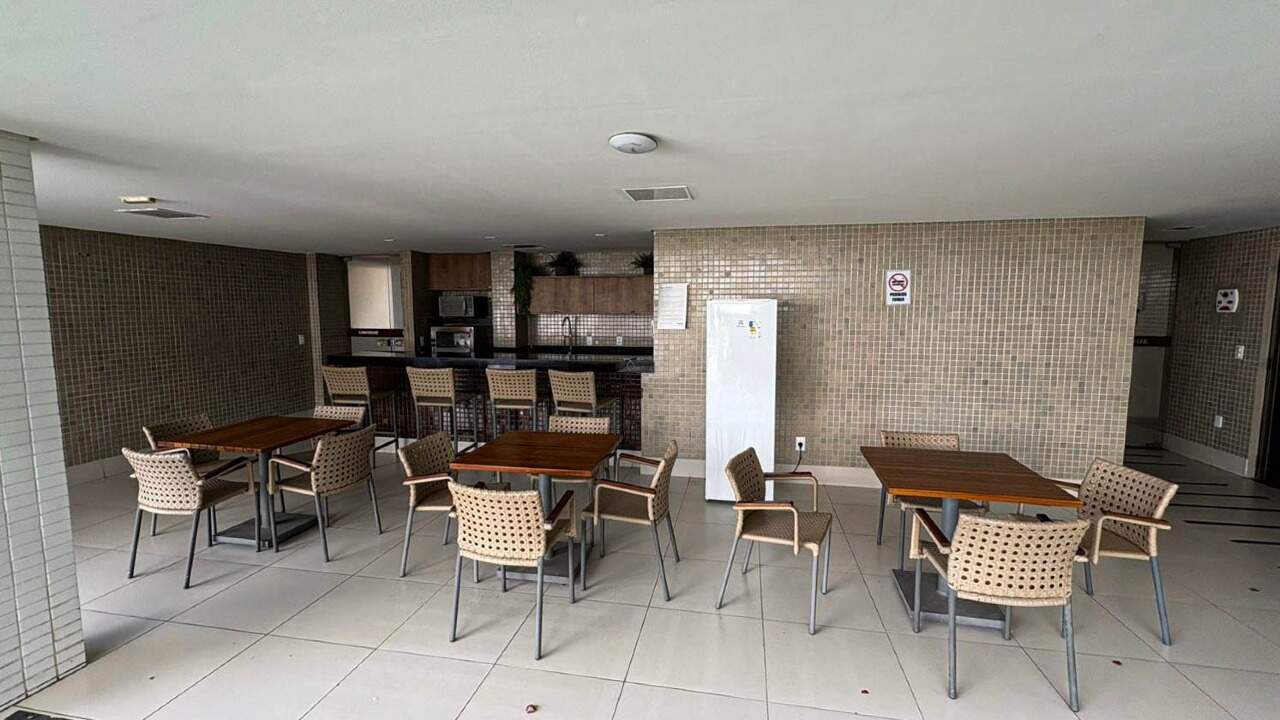 > Área de lazer com piscina, churrasqueira e espaço gourmet;