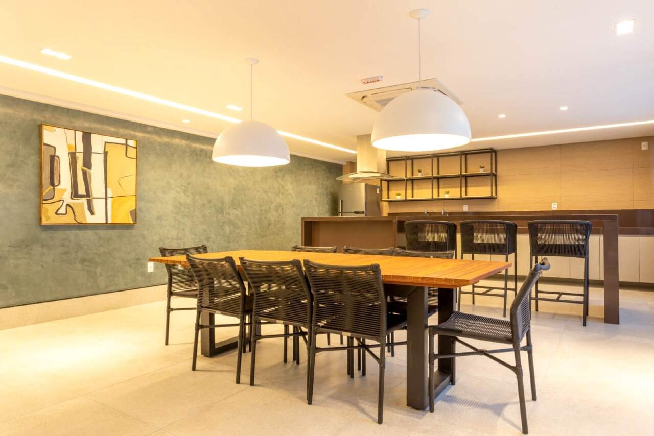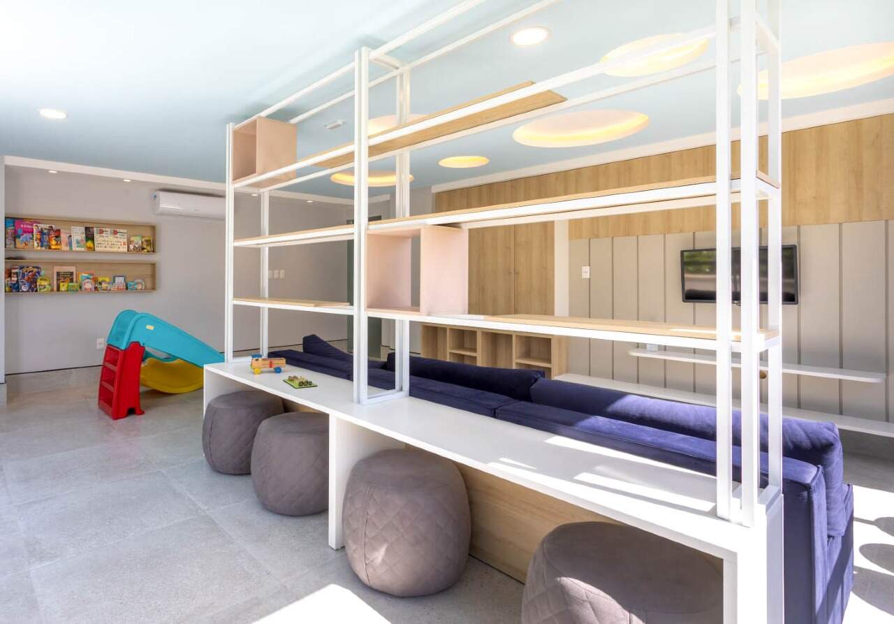 > Area de lazer com piscina, churrasqueira, academia, salão de festas, salão de jogos, home cinema, quadra poliesportiva, espaço gourmet e playground;