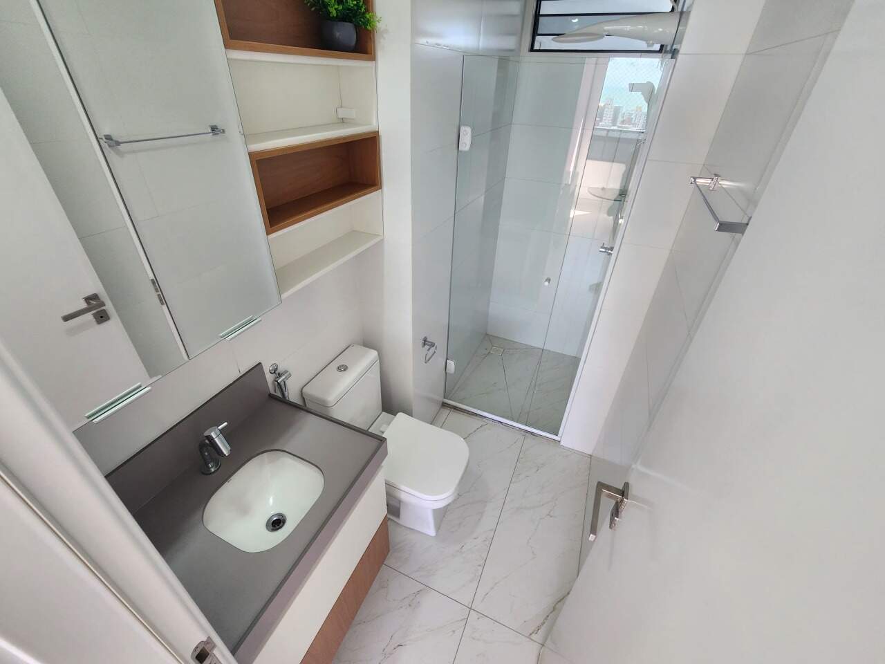 Esse apê conta com sala ampla para dois ambientes, varanda com vista mar, cozinha com área de serviço integrada, um deposito, banheiro social e dois quartos sendo um suíte e um quarto com banheiro reversível, para garantir sua privacidade. Demais características;