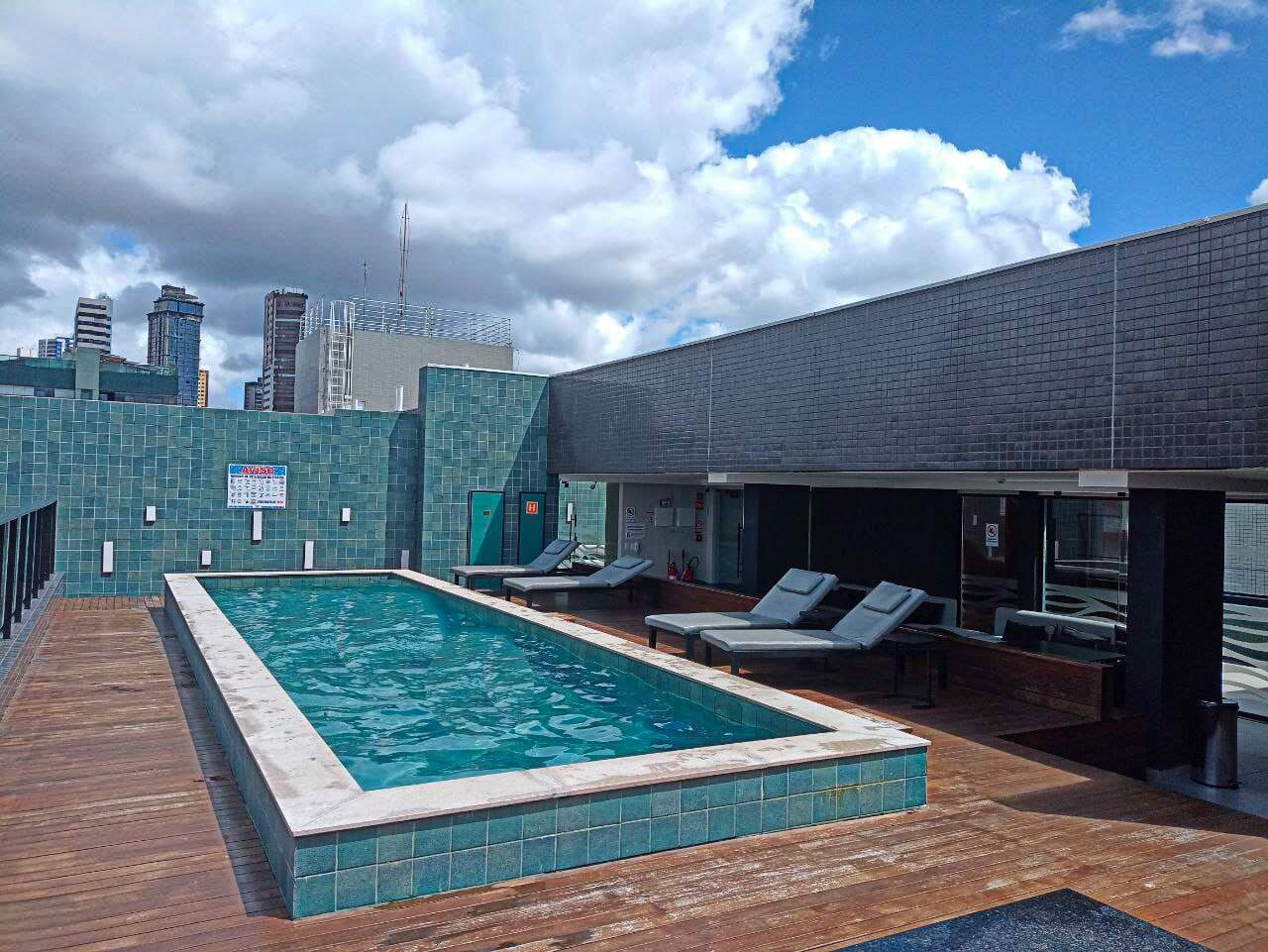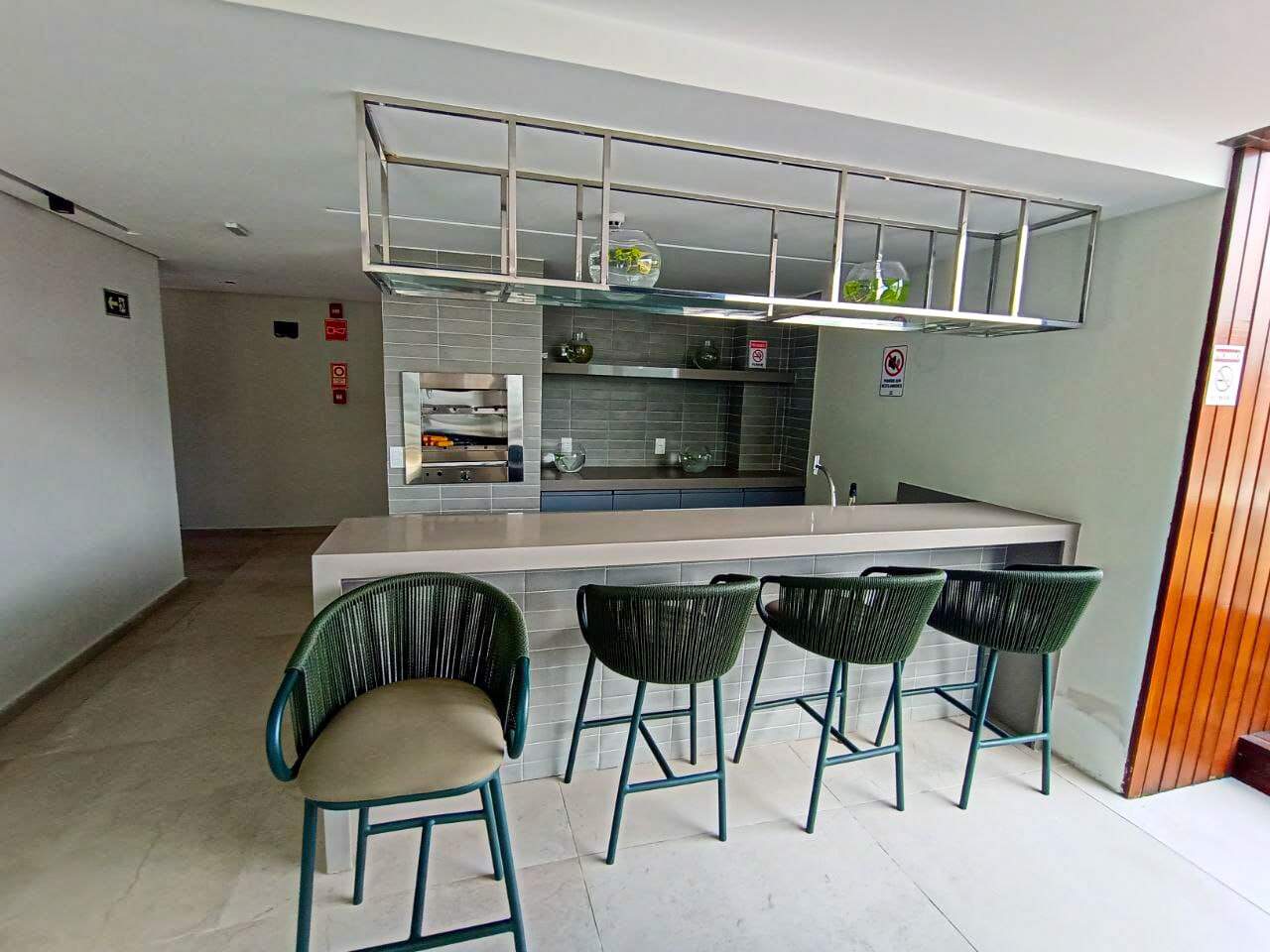 > Área de lazer com piscina, sauna, hidromassagem, espaço gourmet e churrasqueira;