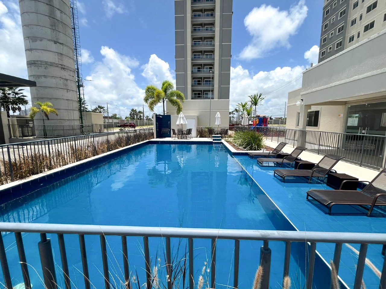 > Área de lazer com piscina e espaço gourmet;