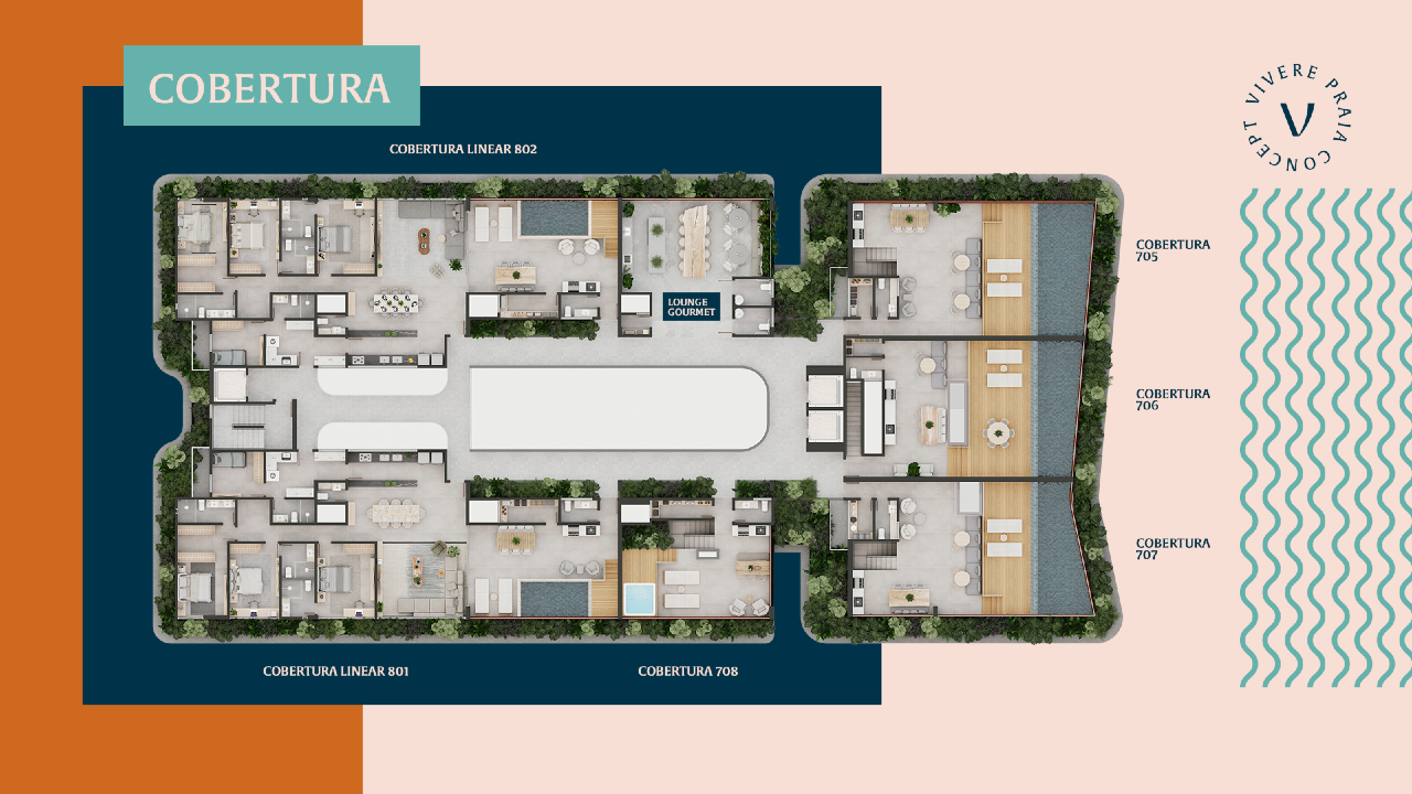 Coberturas com até 264,,83 possuindo 3 quartos, sendo 2 suítes, sala de estar/jantar, banheiro social, cozinha com área de serviço integrada, fechadura digital e área privativa.