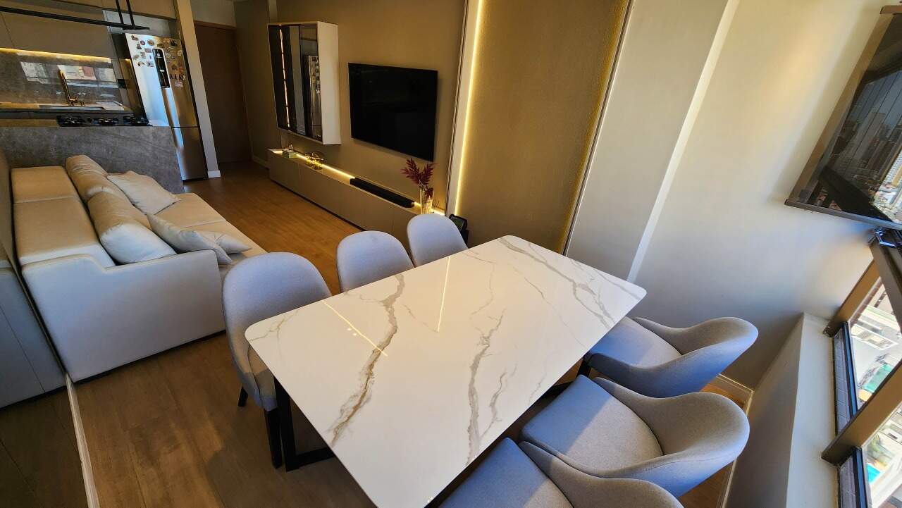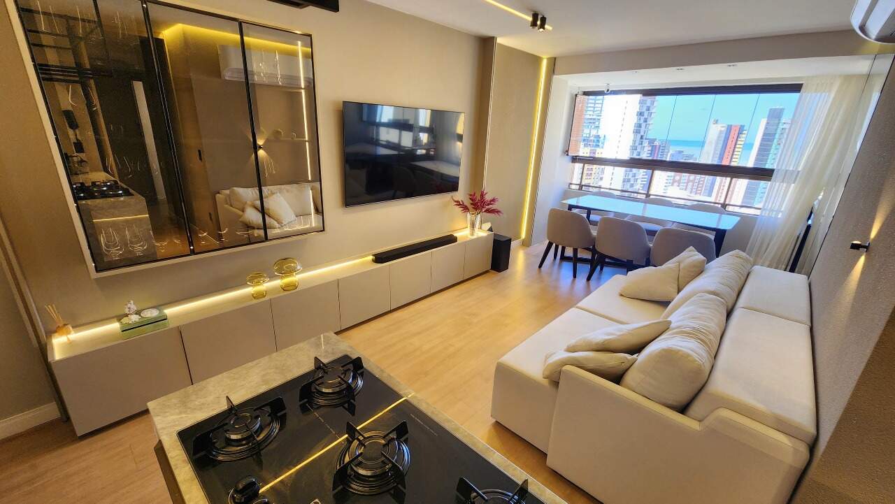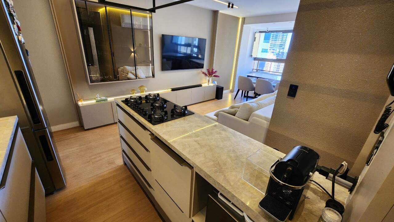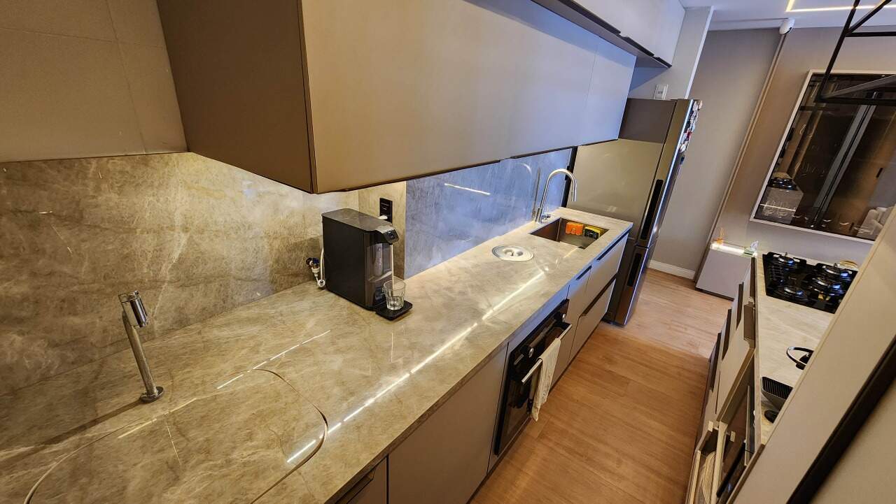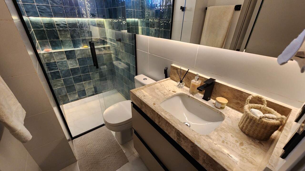 Com uma sala para dois ambientes, ele se destaca pelo ambiente iluminado, acolhedor e pela tecnologia. A alexa em todo o ambiente garante o conforto e praticidade. Cozinha, com área de serviço integrada, facilita o dia a dia, são duas suítes, sendo uma reversível.