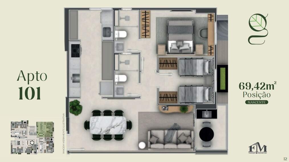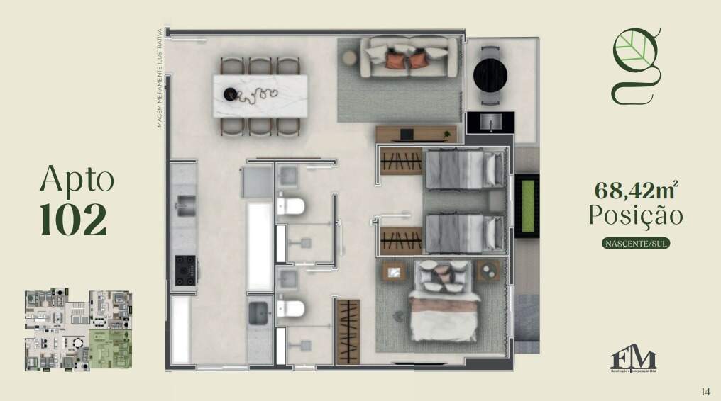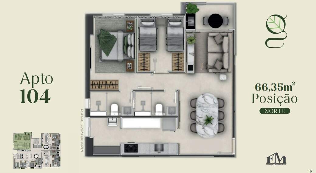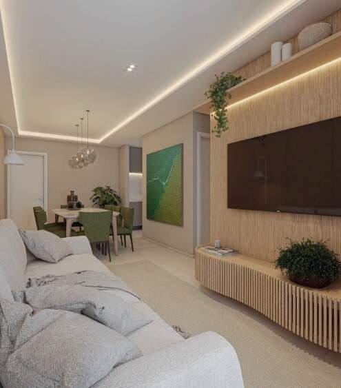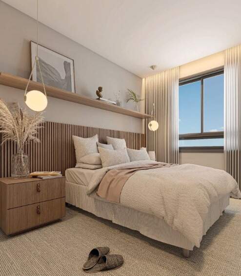 Com opções de plantas diferentes, sendo; Apartamentos com 66,35m² a 69,42m²possuindo dois quartos, sendo um suíte, banheiro social, sala de estar/jantar, cozinha com área de serviço integrada e varanda gourmet.