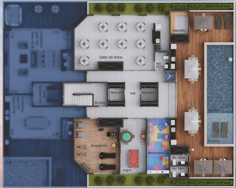 O empreendimento tem uma vasta área de lazer com piscina, espaço gourmet, academia, salão de festas, salão de jogos, elevador e muito mais para garantir a sua diversão.