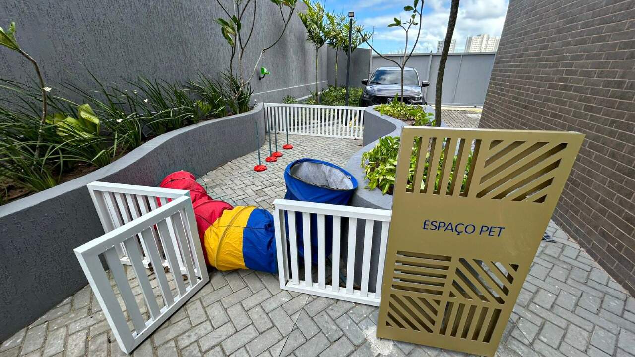 > Academia, quadra poliesportiva, brinquedoteca e pet place;