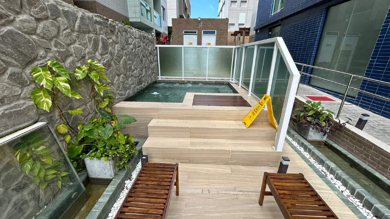 > Área de lazer com piscina, hidromassagem, churrasqueira e espaço gourmet;