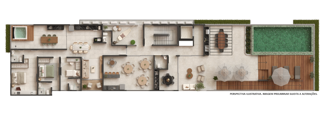 O empreendimento tem uma vasta área de lazer com piscina, espaço gourmet, lavanderia compartilhada, mini market, salão de jogos, área pet, playground, elevador e muito mais para garantir a sua diversão.